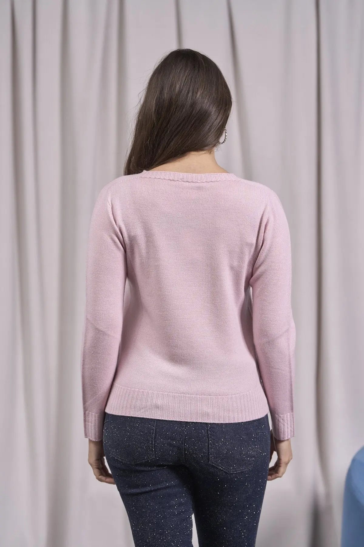 Suéter de cuello redondo con detalles de canalé ancho ROSA