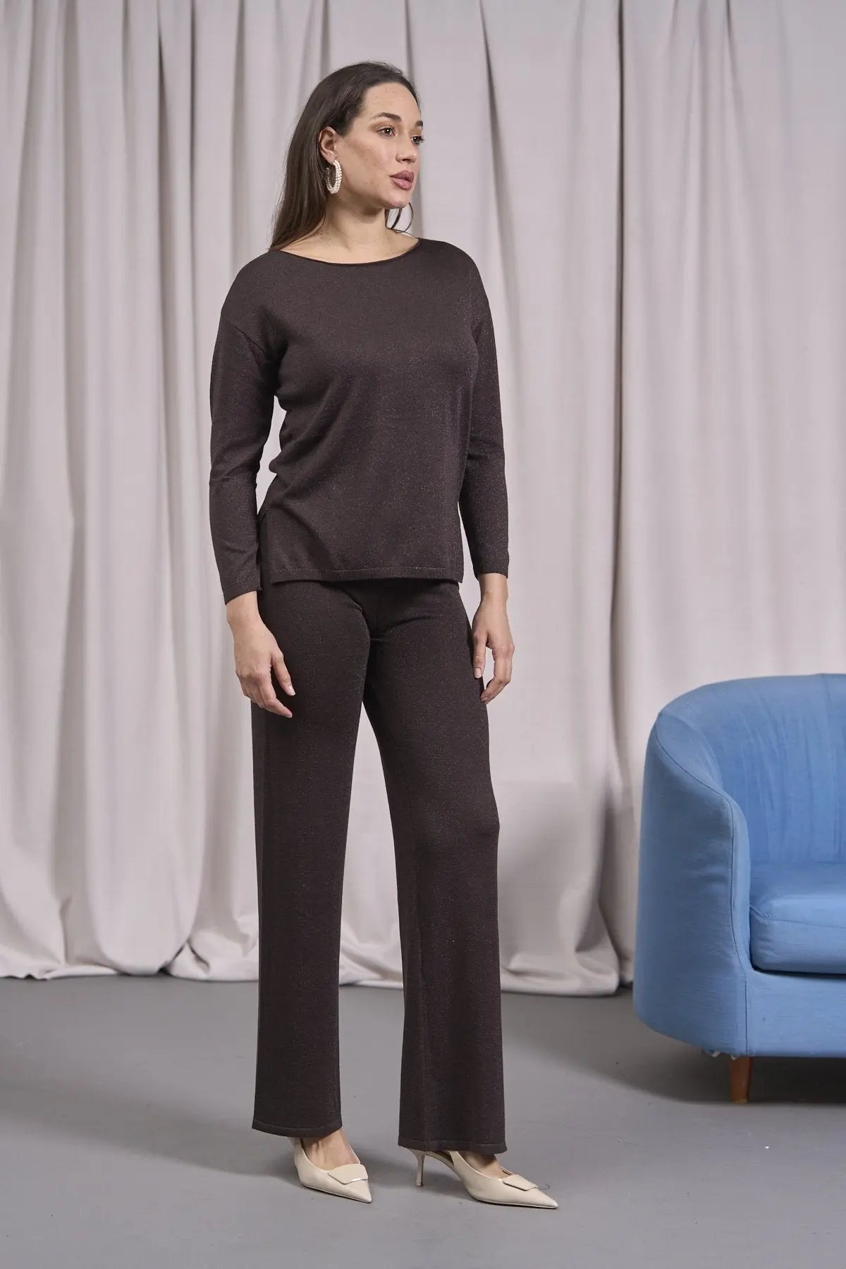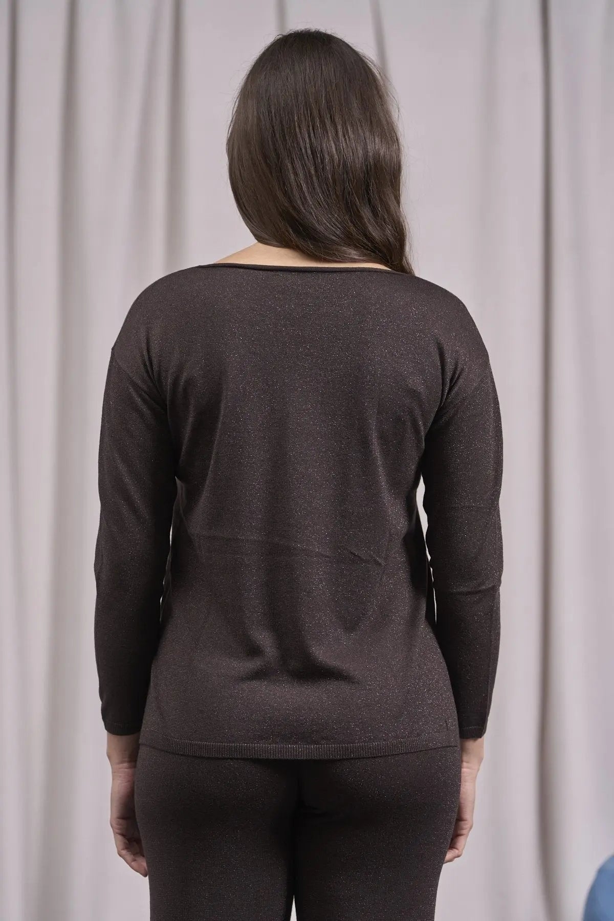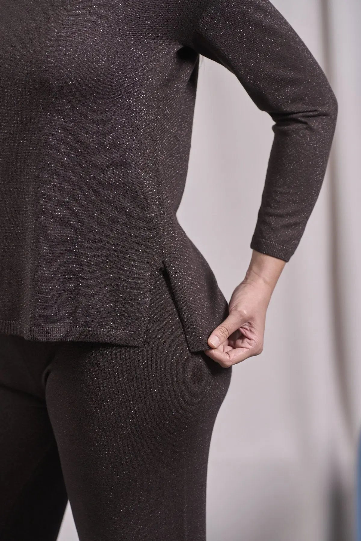 Suéter MORO de cuello redondo de lurex con aberturas y canalé