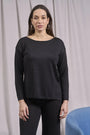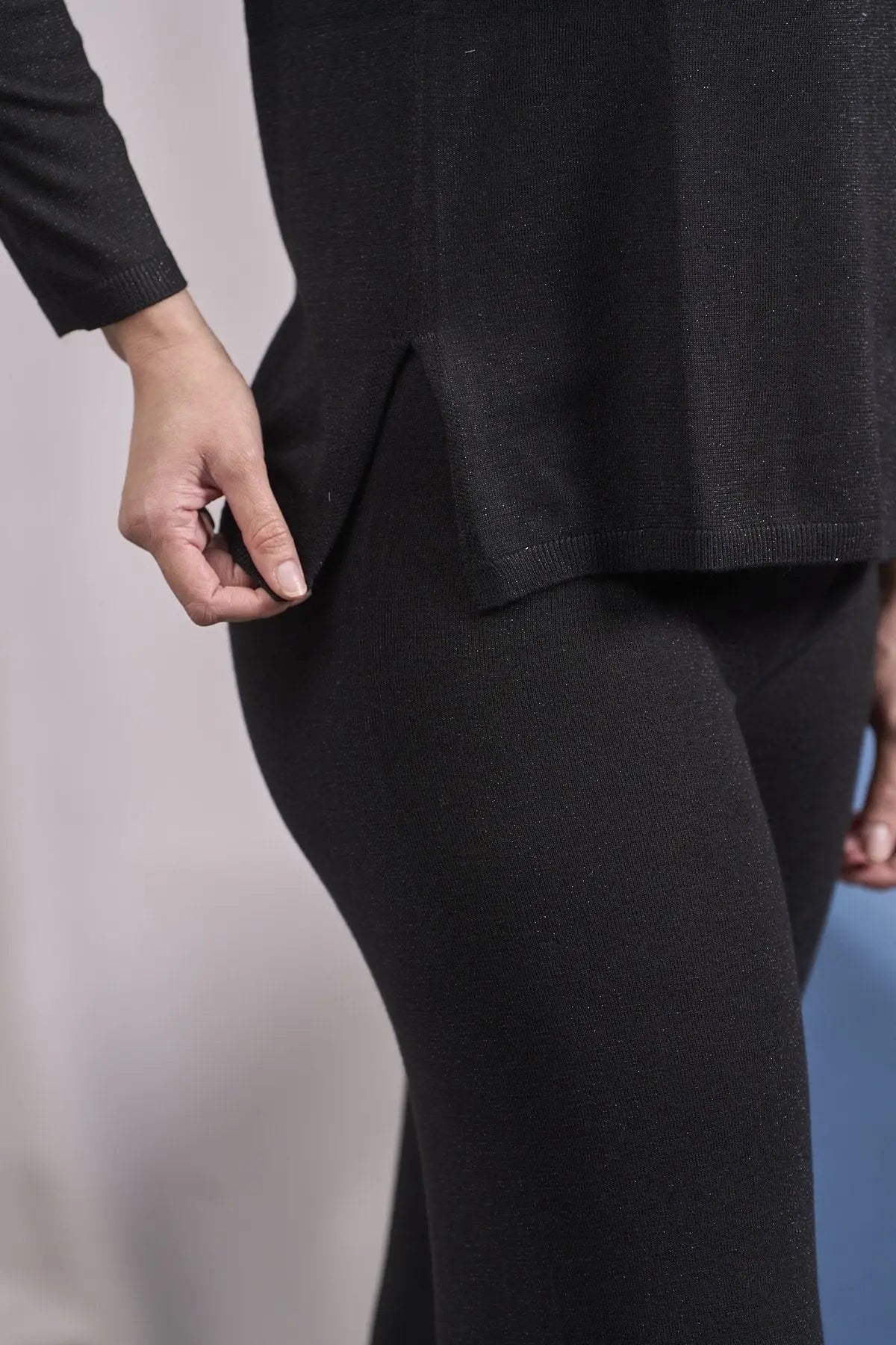 Suéter de cuello redondo de lúrex con aberturas y canalé NEGRO