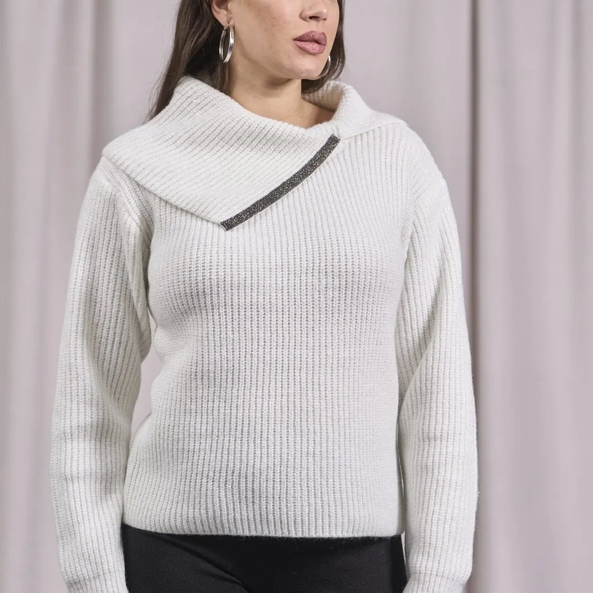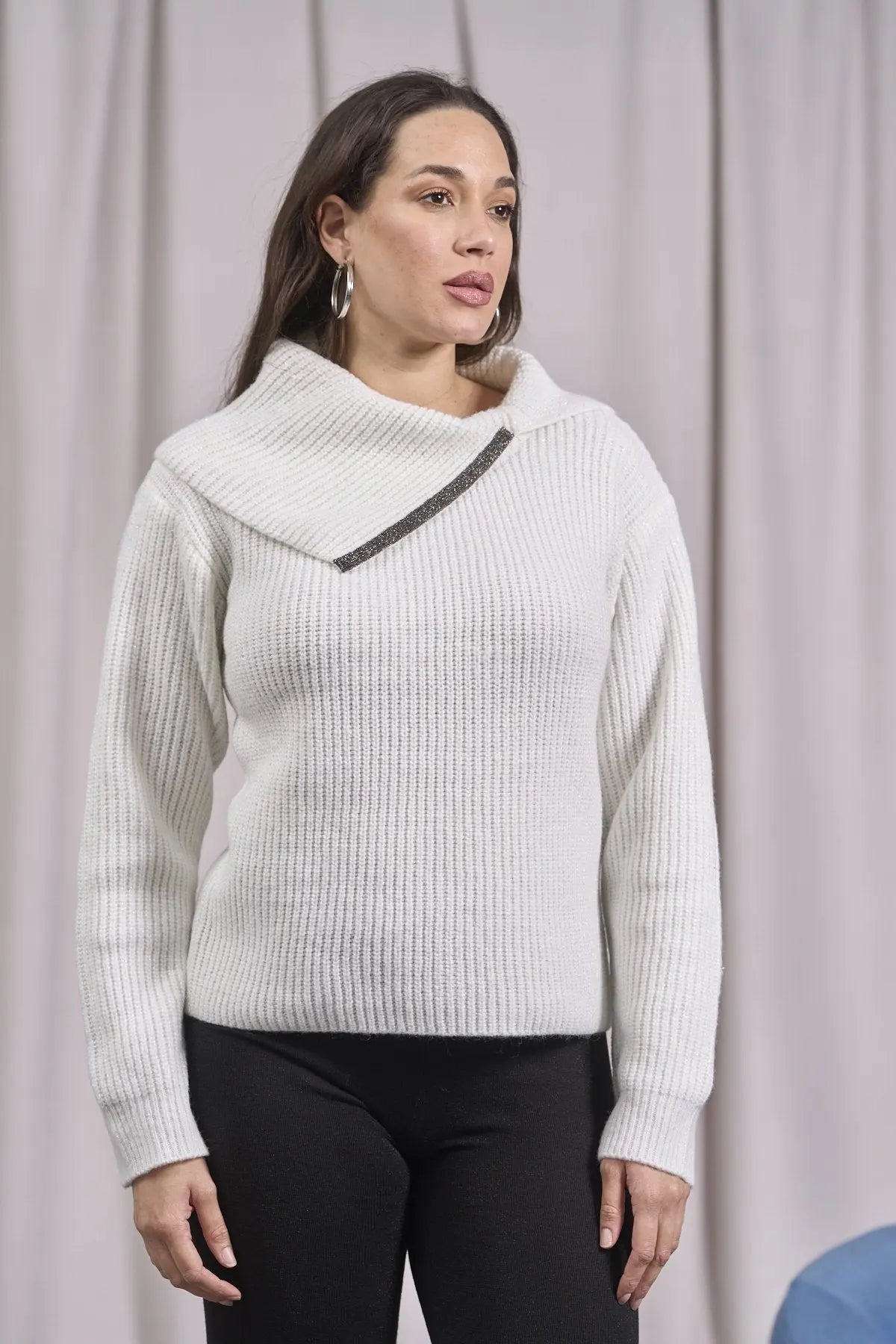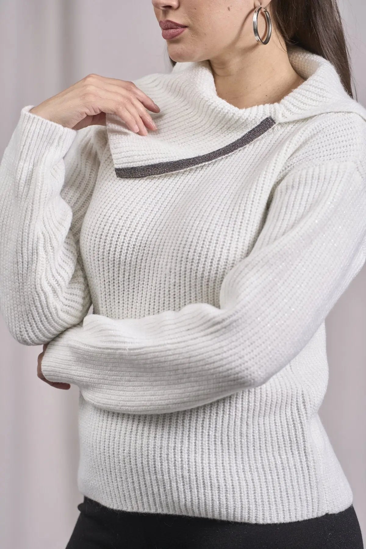 Suéter de cuello alto asimétrico con adornos OFF WHITE