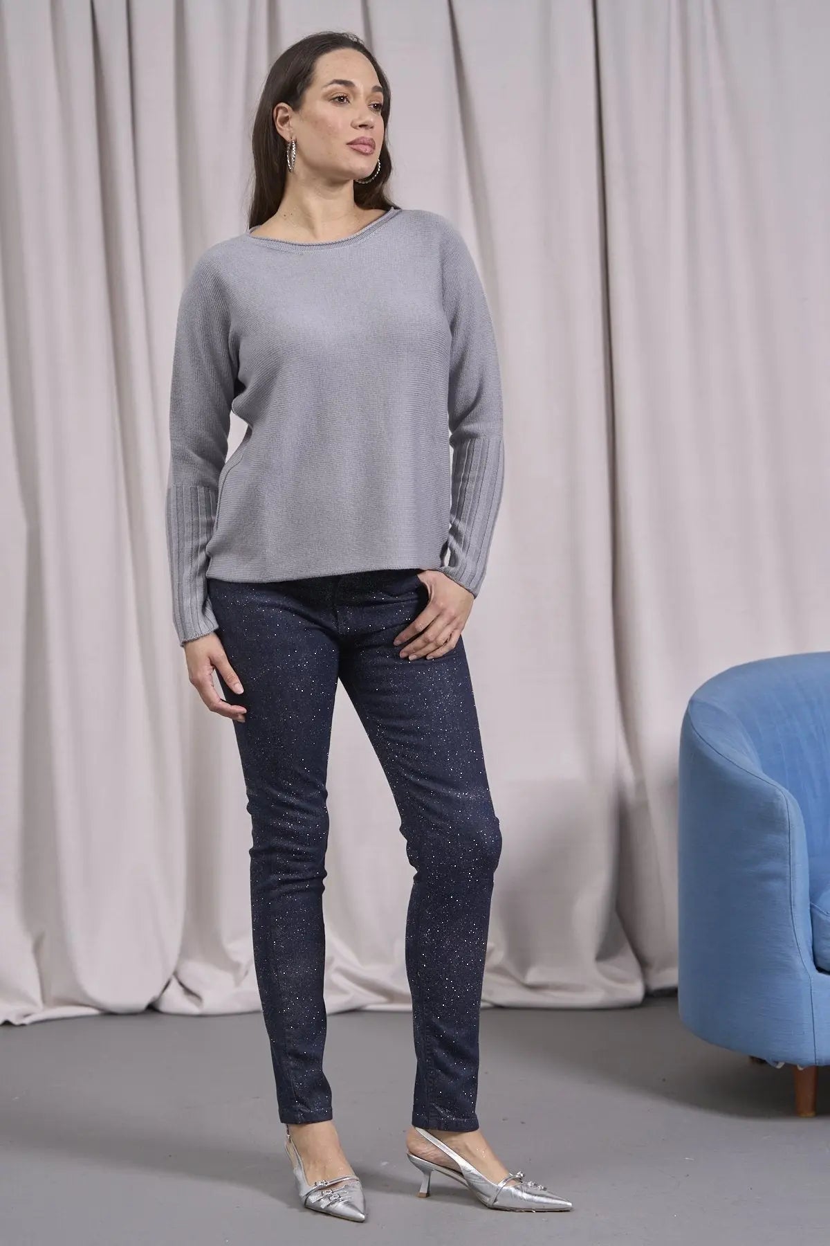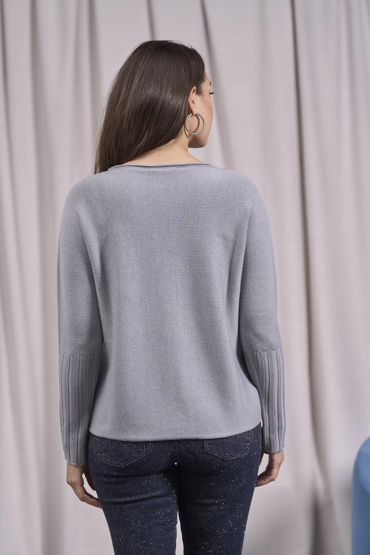 Suéter de cuello redondo con canalé alto en las mangas GRIS CLARO