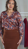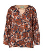 BLUSA DE CUELLO EN V CON ACCESORIO ESTAMPADO