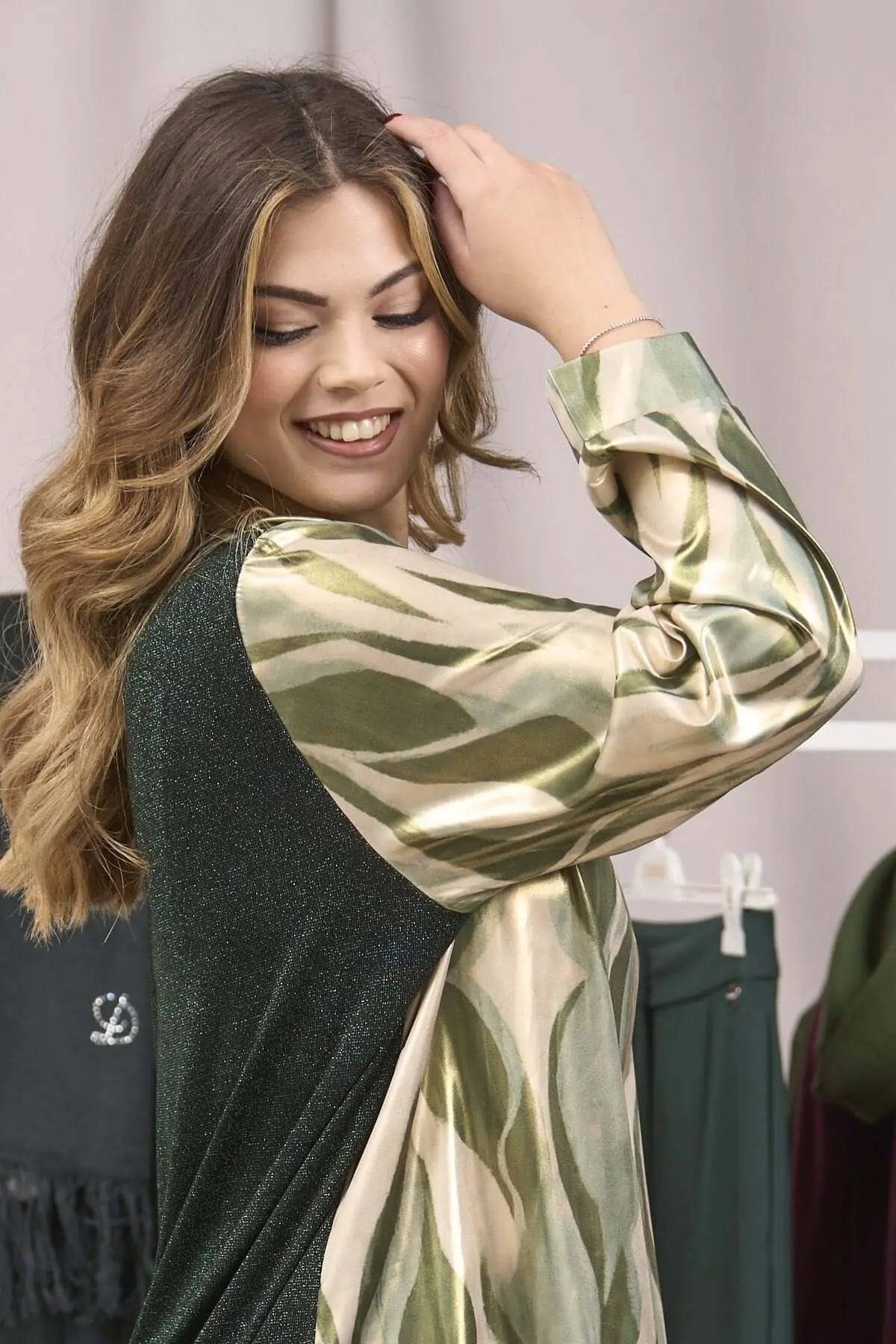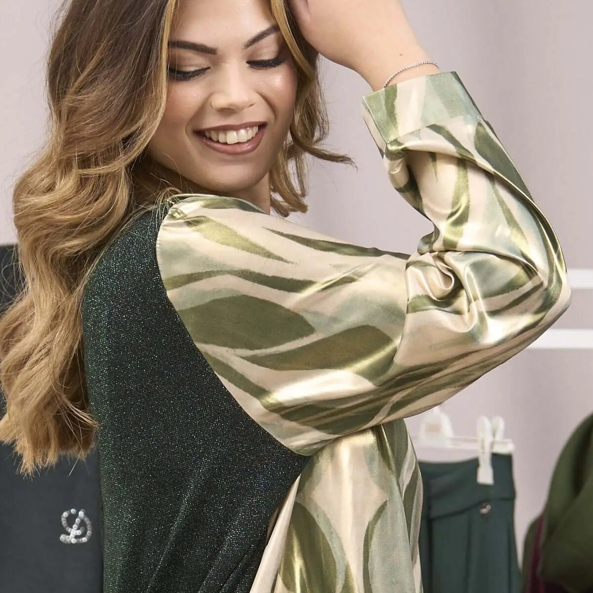 BLUSA DE SATÉN BIMATERIAL VERDE