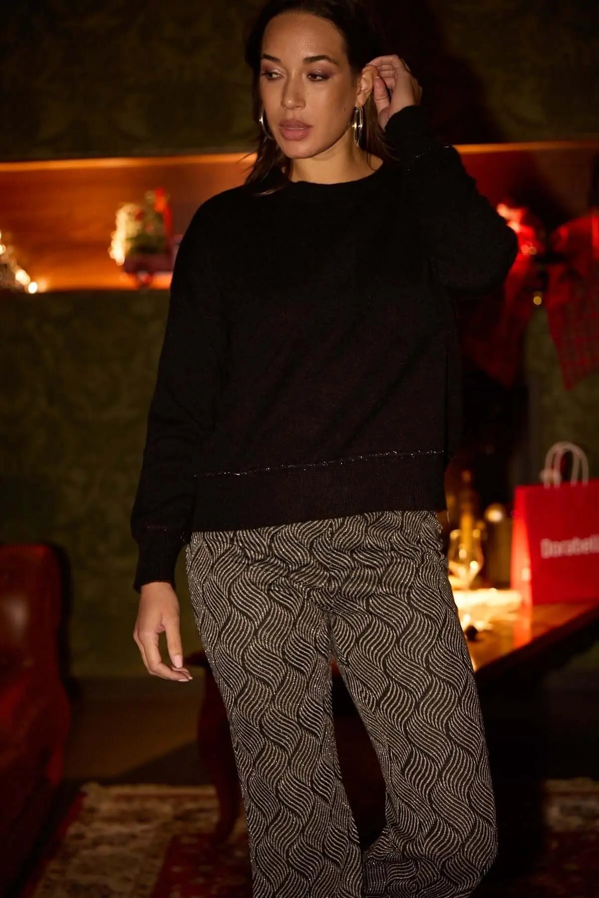 SUÉTER DE CUELLO REDONDO CON PERFIL DE LUREX NEGRO