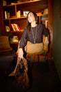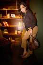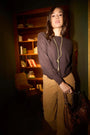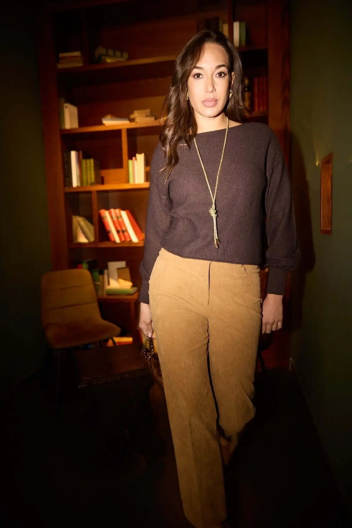 SUÉTER DE CUELLO REDONDO CON MANGAS ABULLONADAS MARRÓN OSCURO