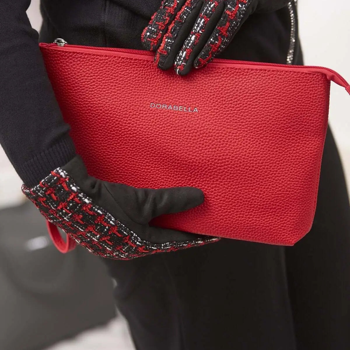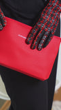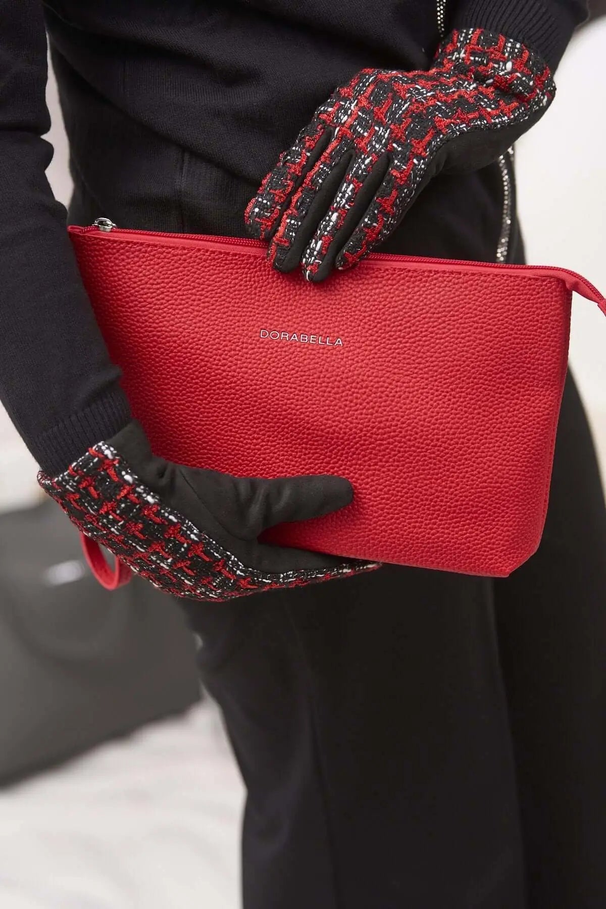 Guantes de dos materiales en tejido azul con estampado ROJO