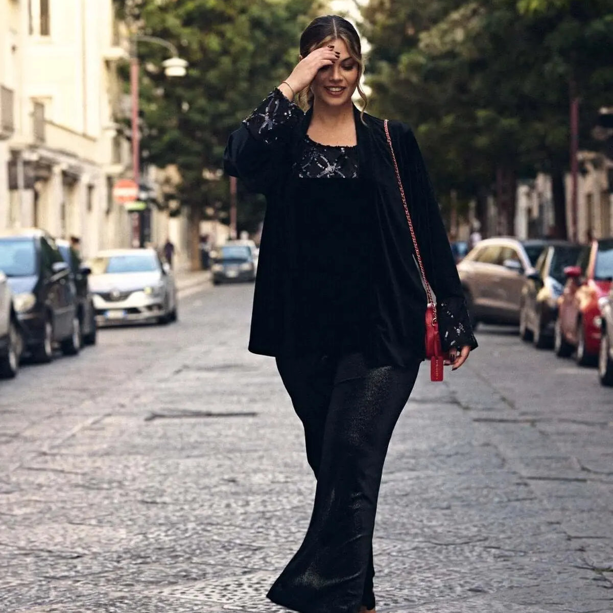 Conjunto de terciopelo con inserciones bordadas NEGRO