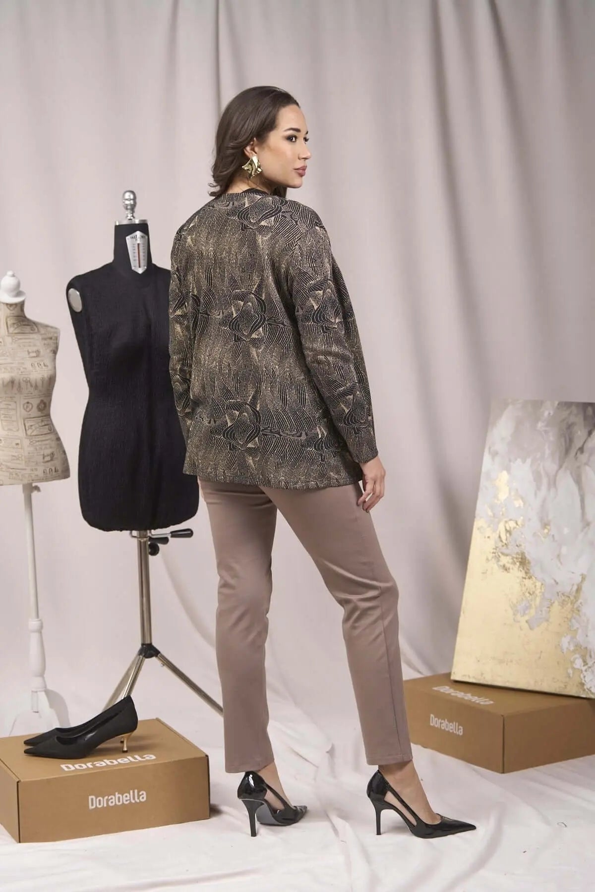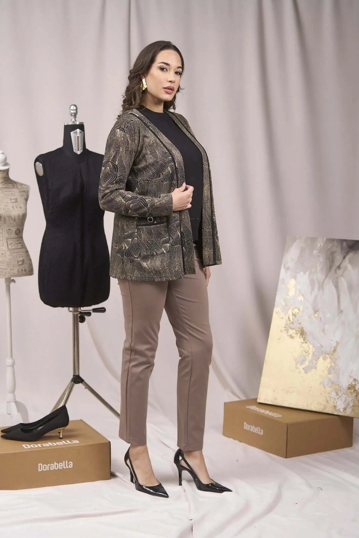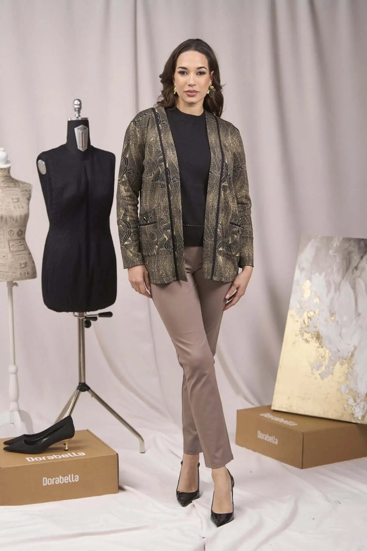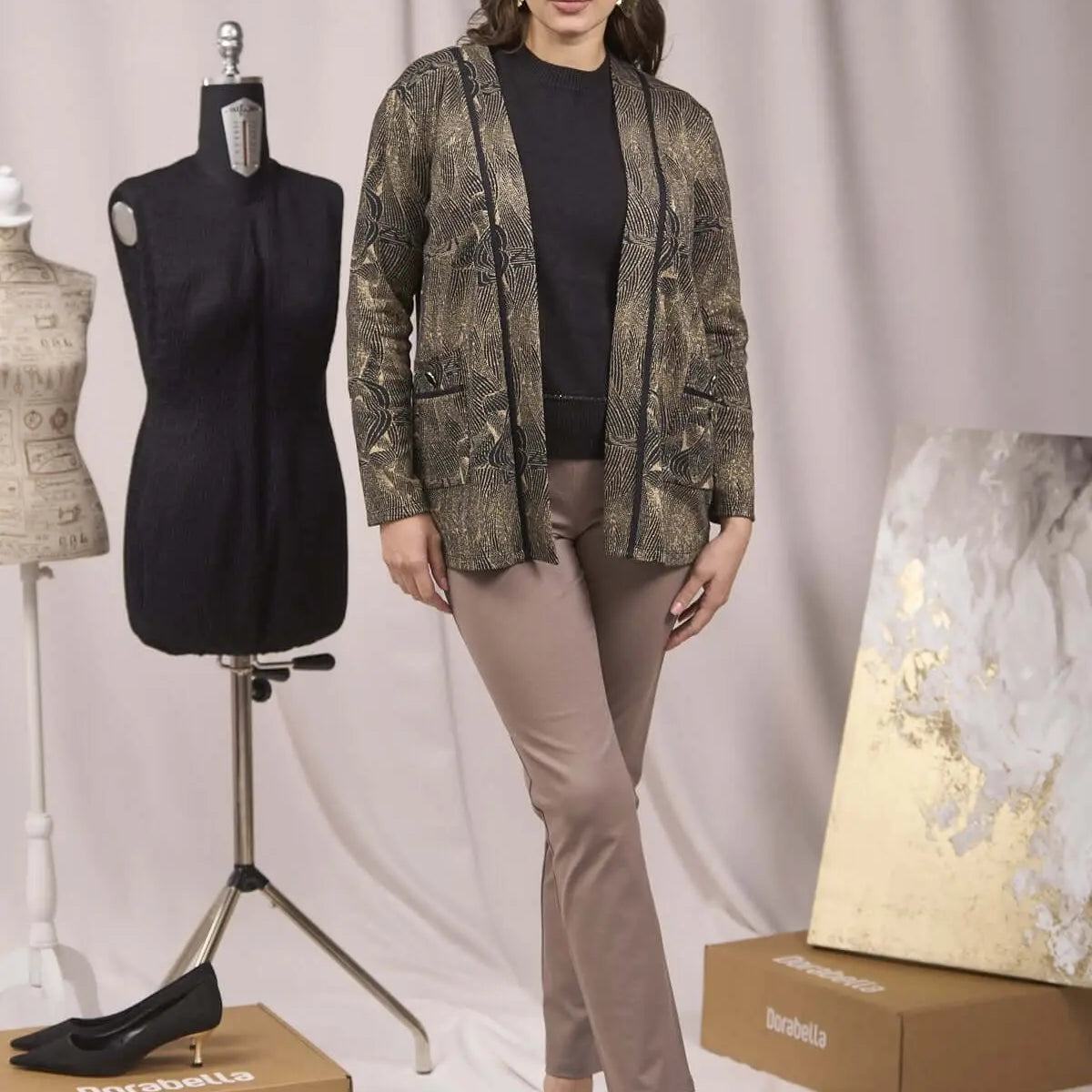 Cárdigan con estampado de jacquard y lurex con bolsillos NEGRO-ORO