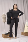 PANTALÓN DE PESPUNTE MILANO CON BOTÓN METÁLICO NEGRO