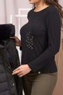 Camiseta de manga larga con aplicaciones de pedrería NEGRA