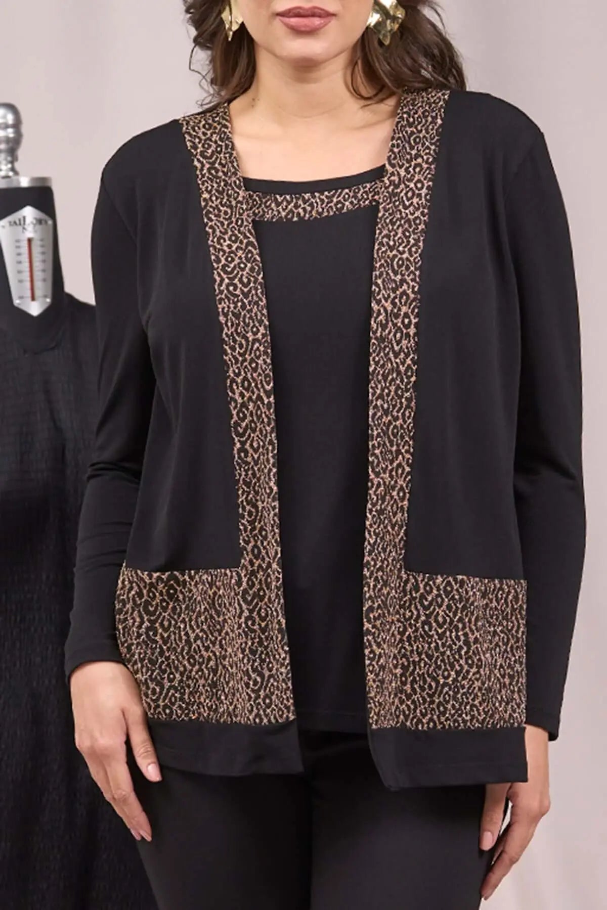Un diseño sofisticado y equilibrado para este falso twinset de estilo mix & match: las inserciones estampadas en el cuello redondo y en la parte delantera aportan un atractivo chic al look.