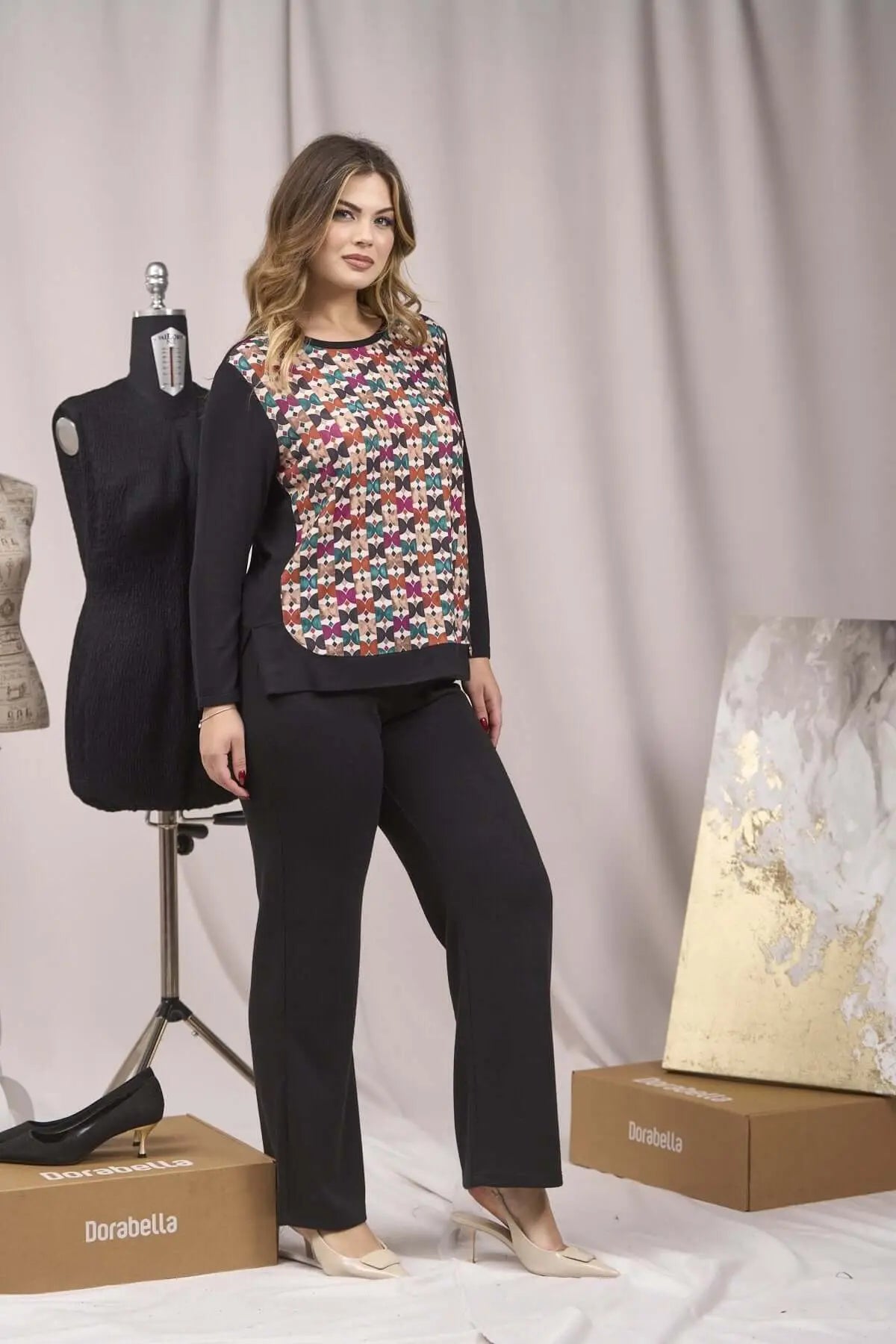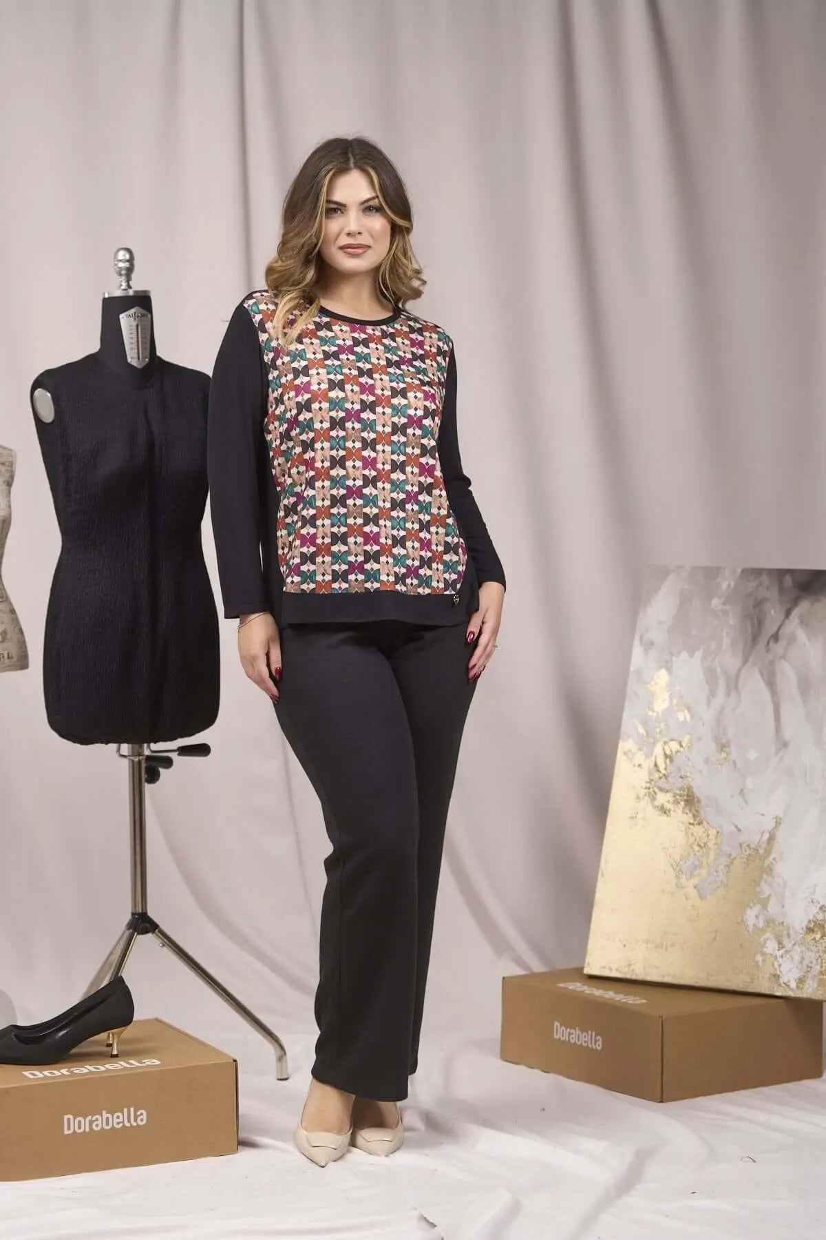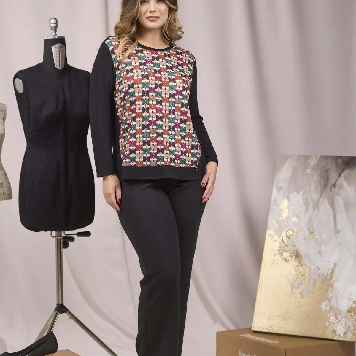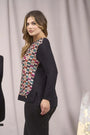 Suéter de color liso con inserto estampado y aberturas NEGRO