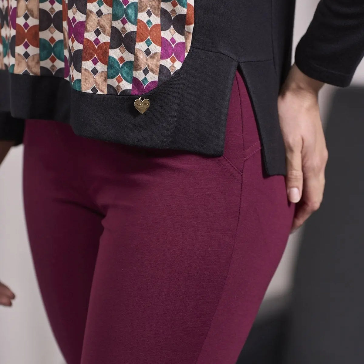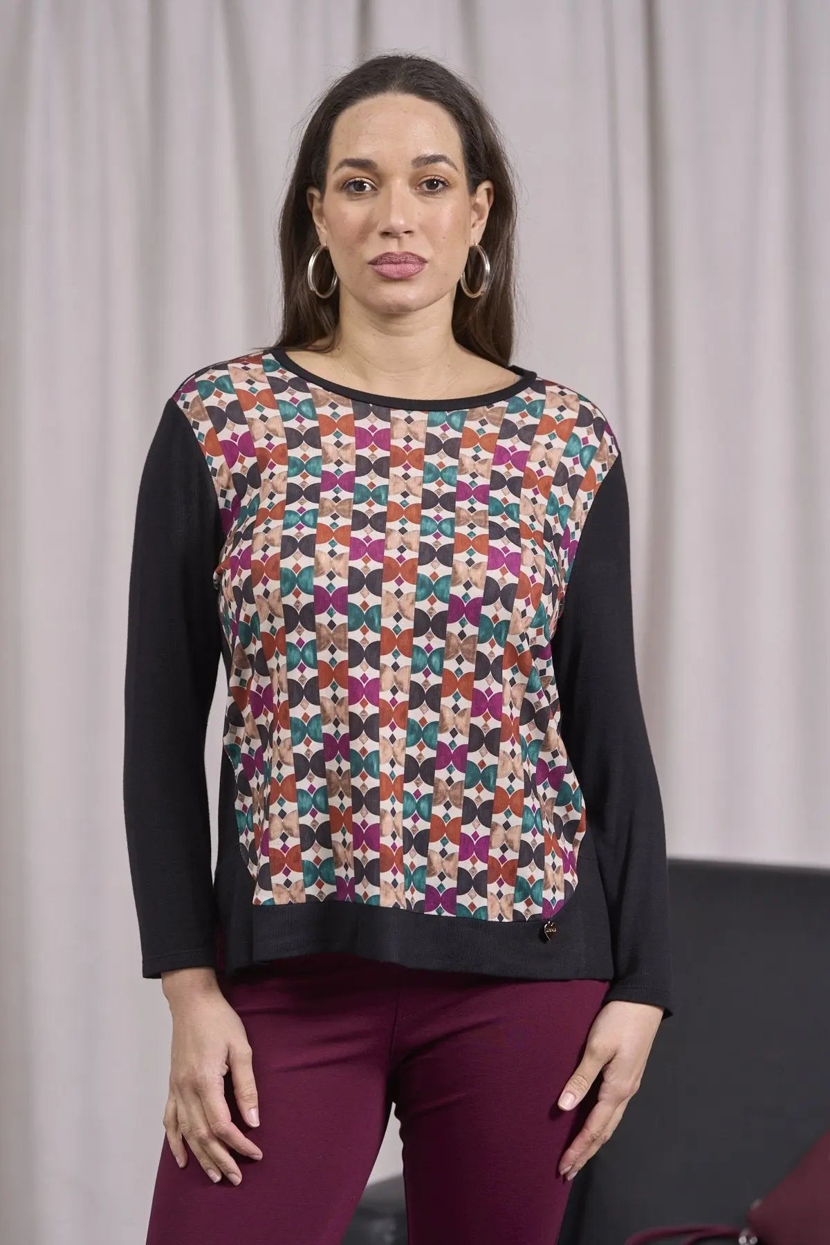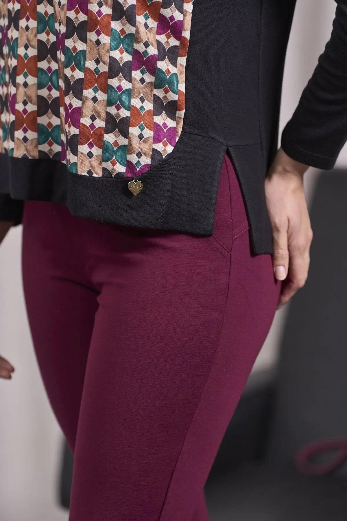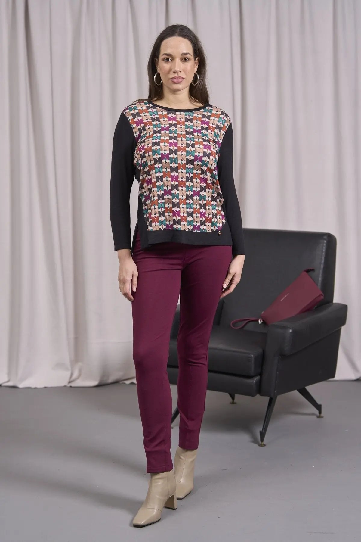 Suéter liso con inserción estampada y aberturas CYCLAMEN