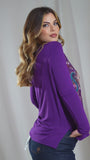 Suéter con estampado delantero y aberturas MORADO