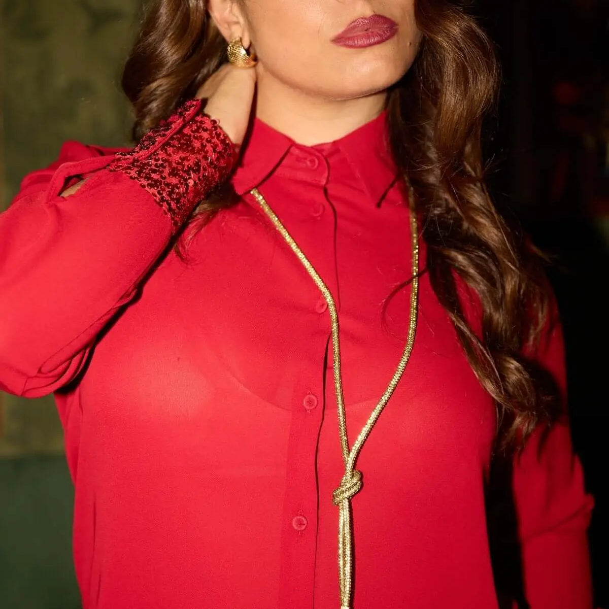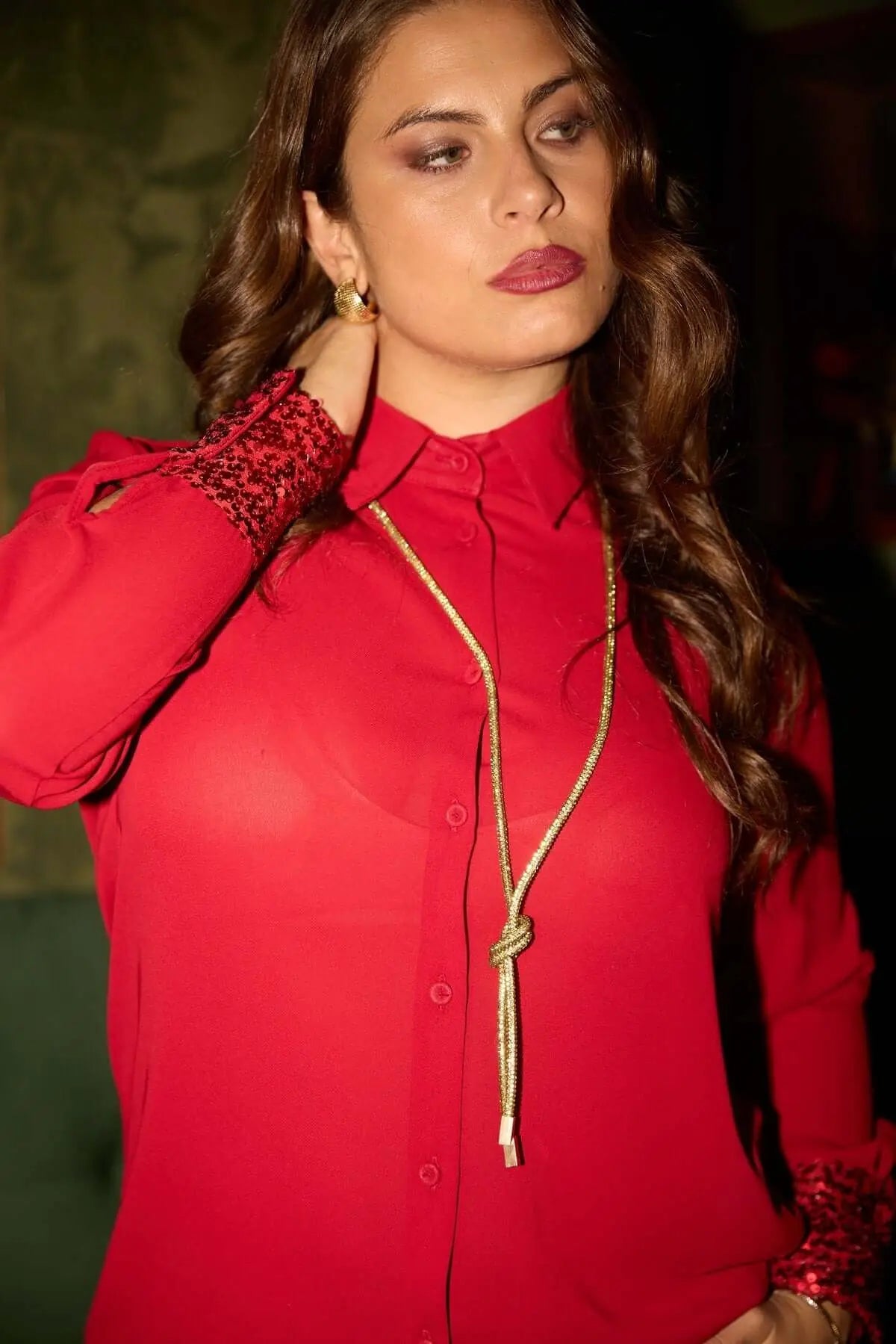 CAMISA CON APLIQUE DE LENTEJUELAS ROJAS