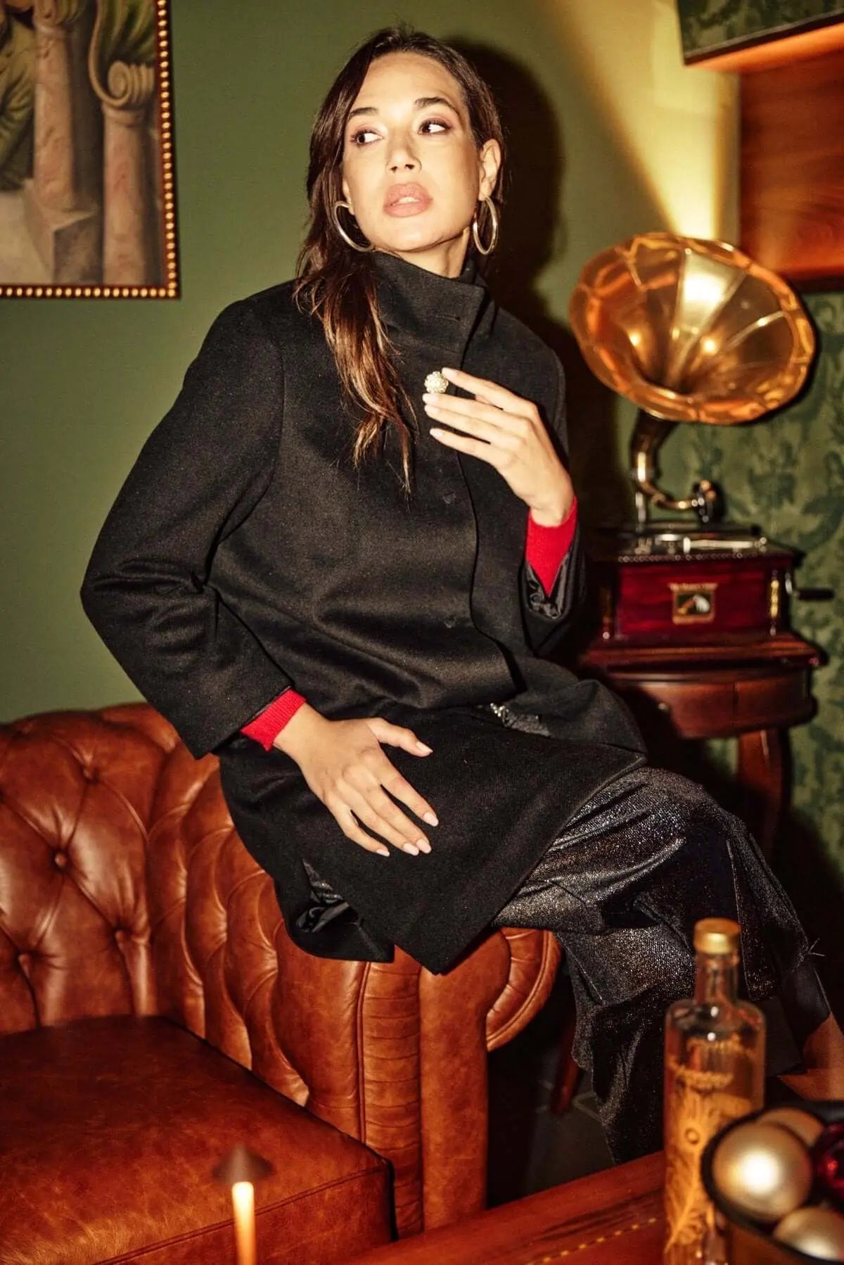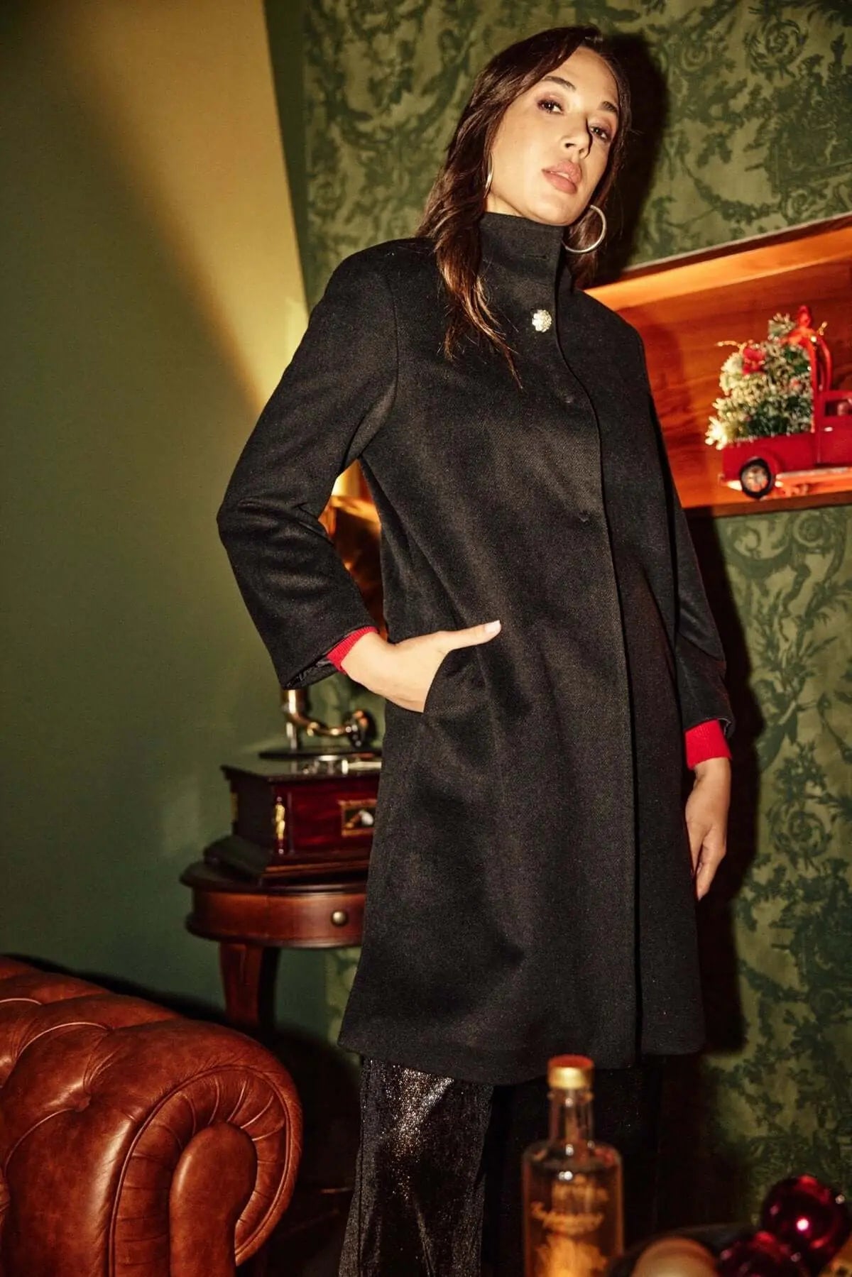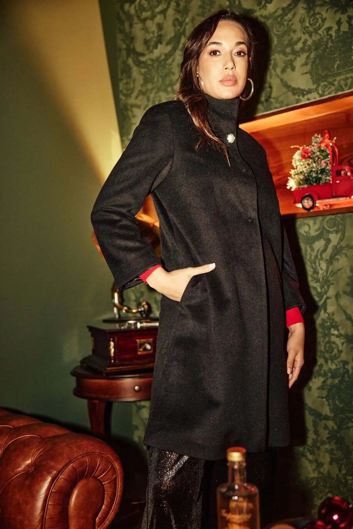 Abrigo negro con botones de joya