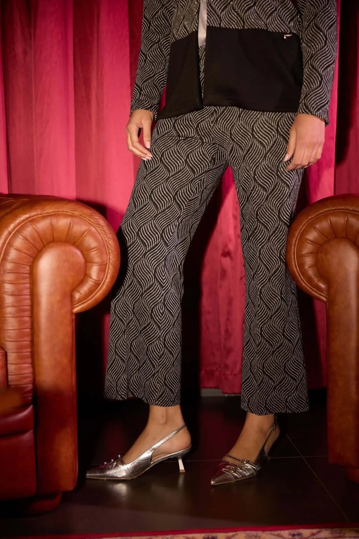 Pantalón acampanado de jacquard de lúrex NEGRO