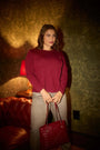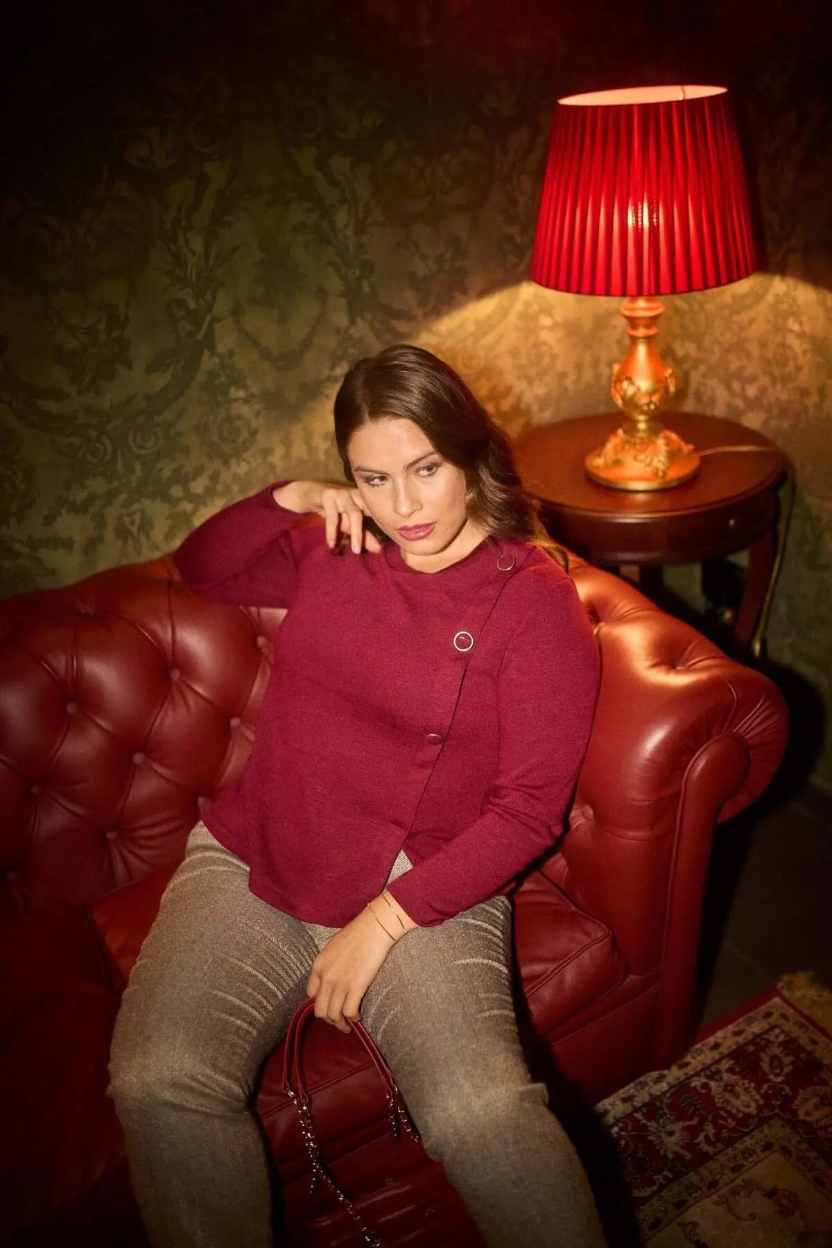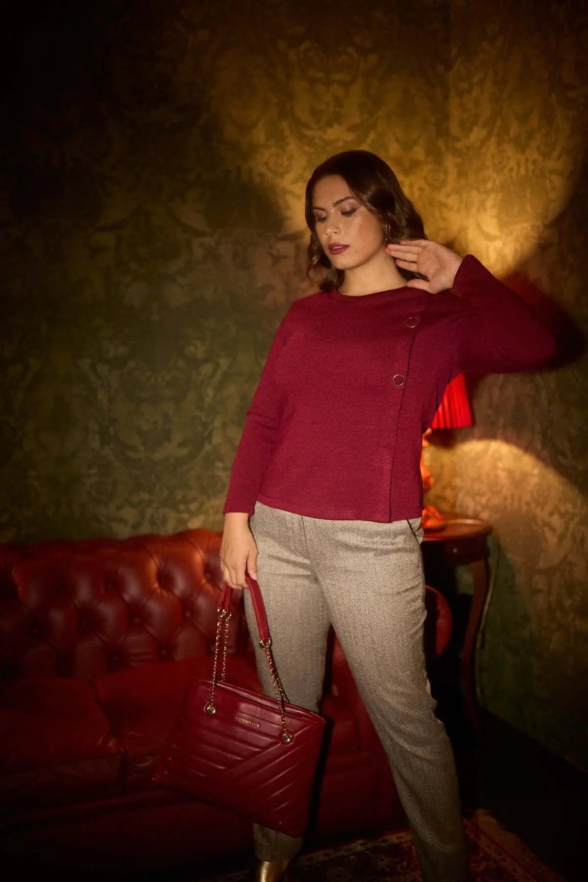 SUÉTER DE CUELLO REDONDO CON BOTONES BURDEOS