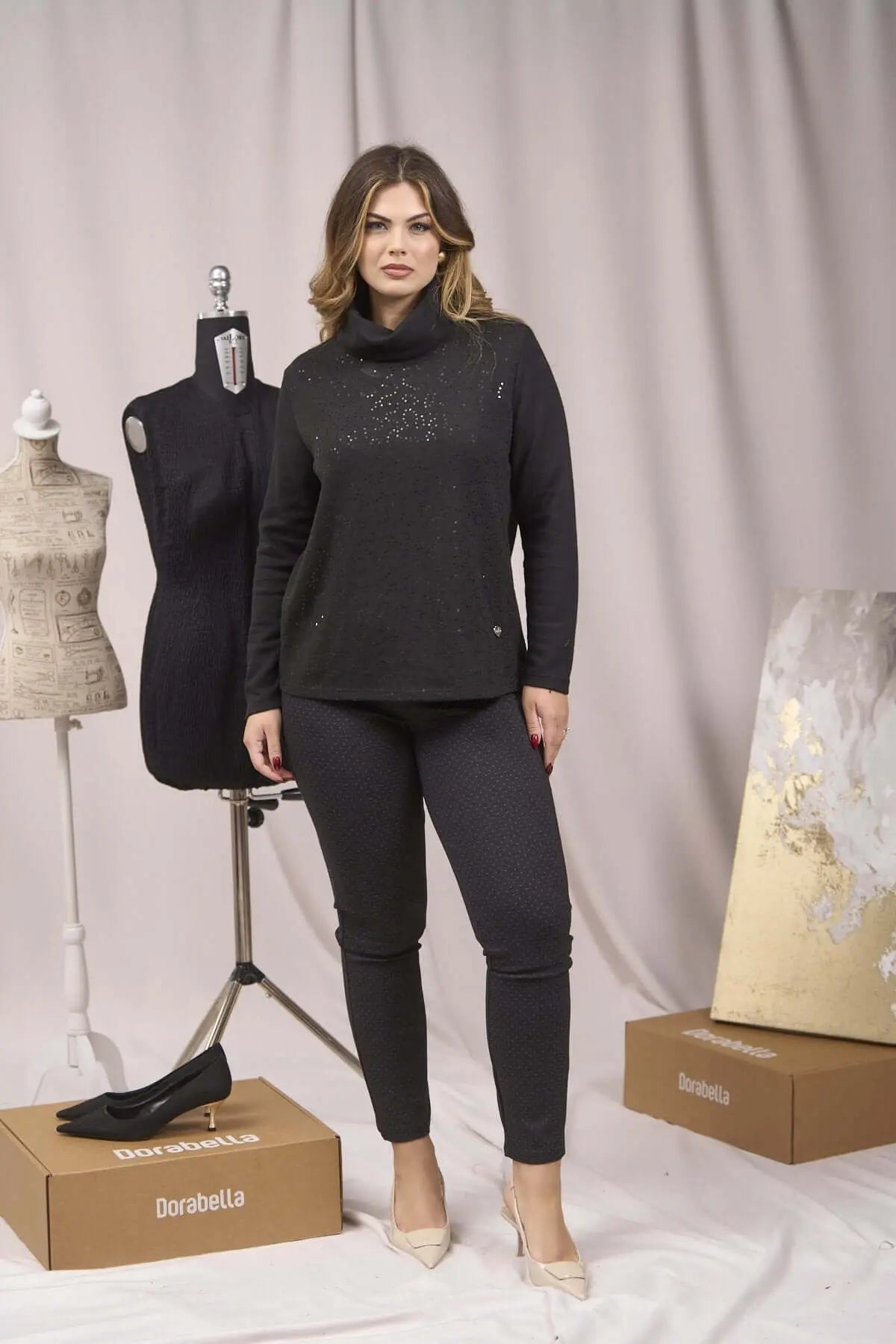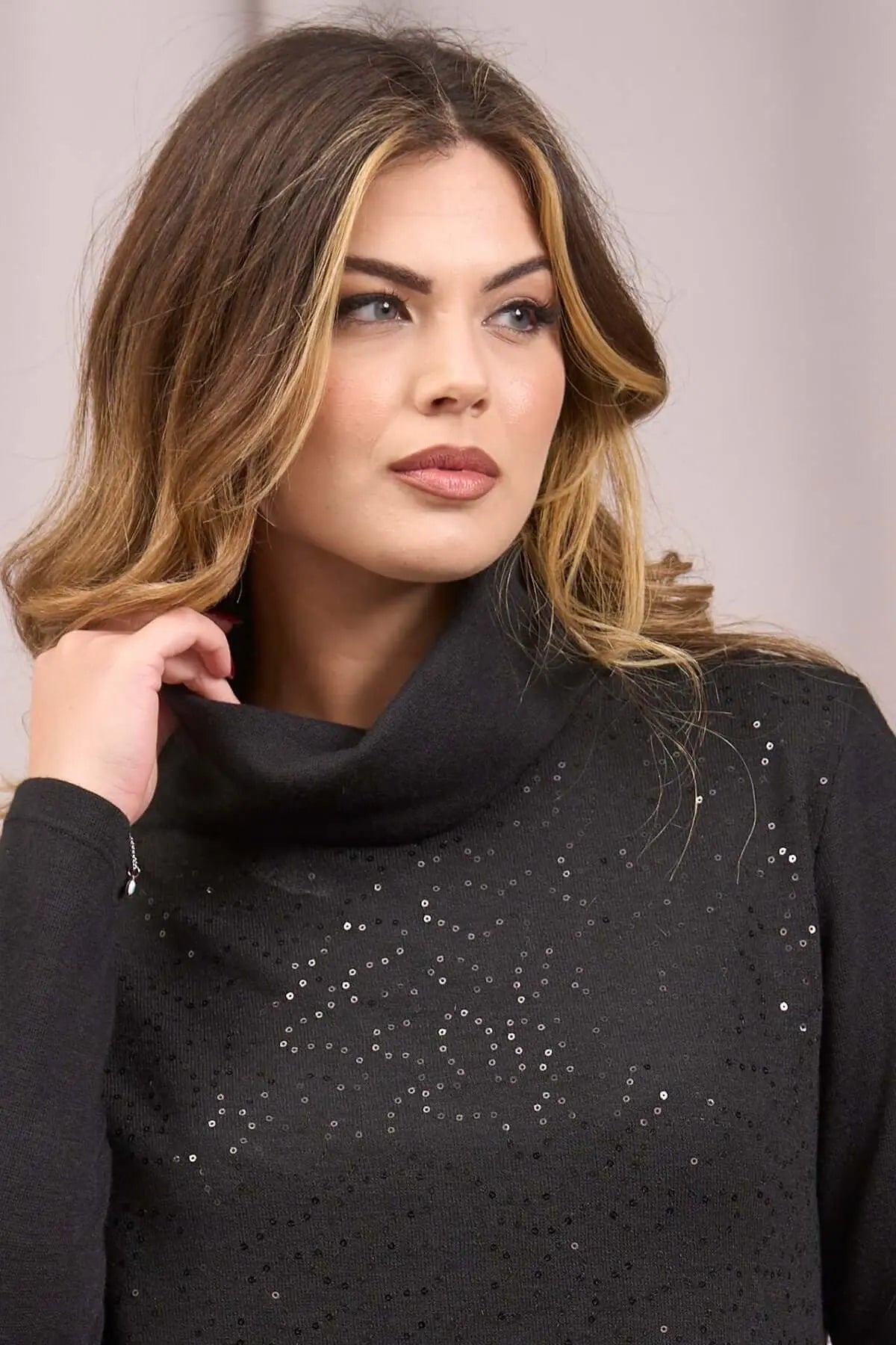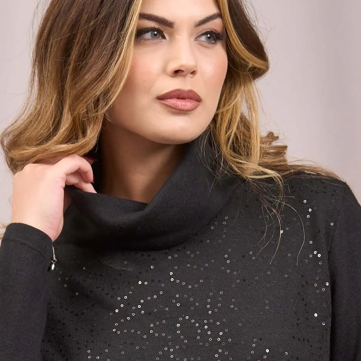 Suéter de cuello alto con lentejuelas bordadas NEGRO