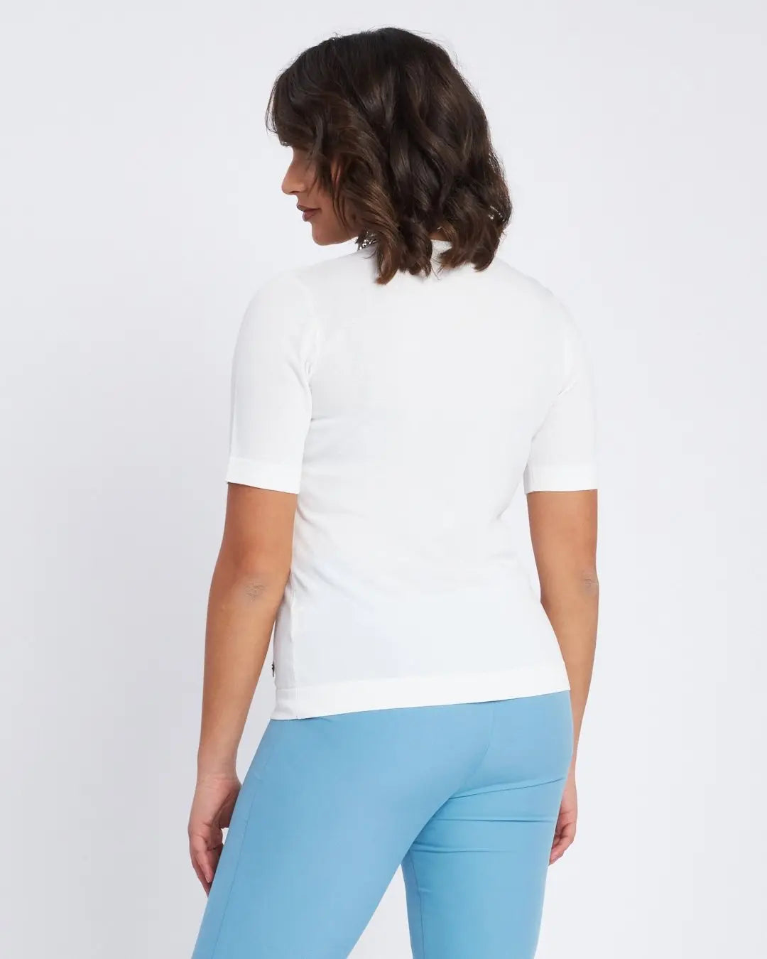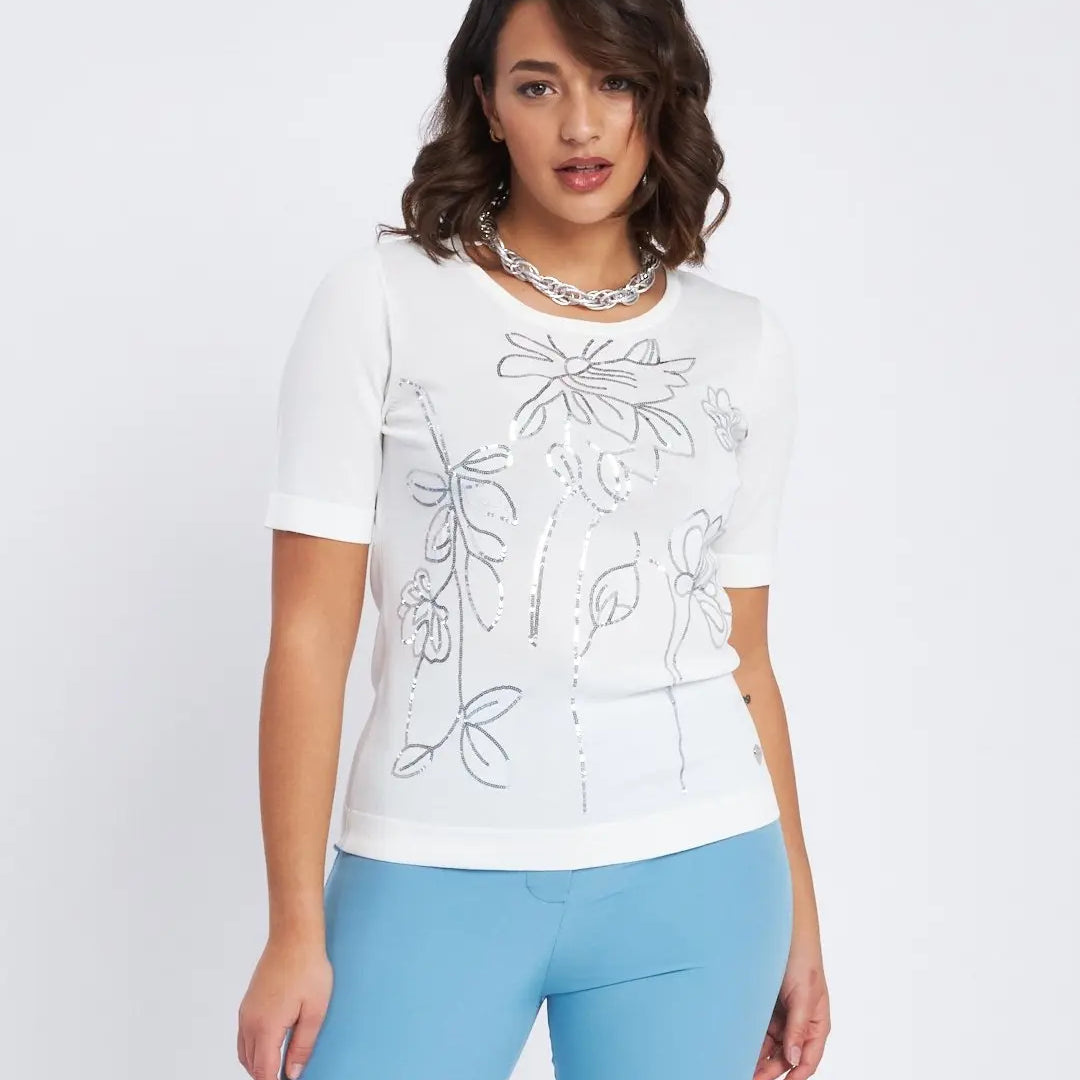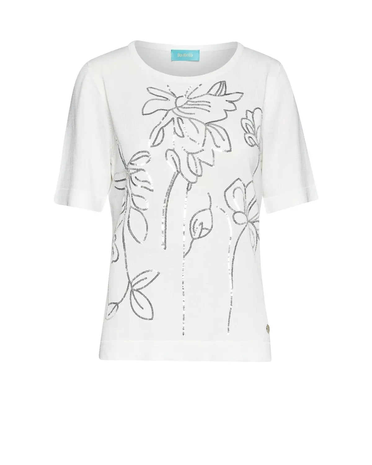 Suéter de media manga con bordado de lentejuelas BLANCO