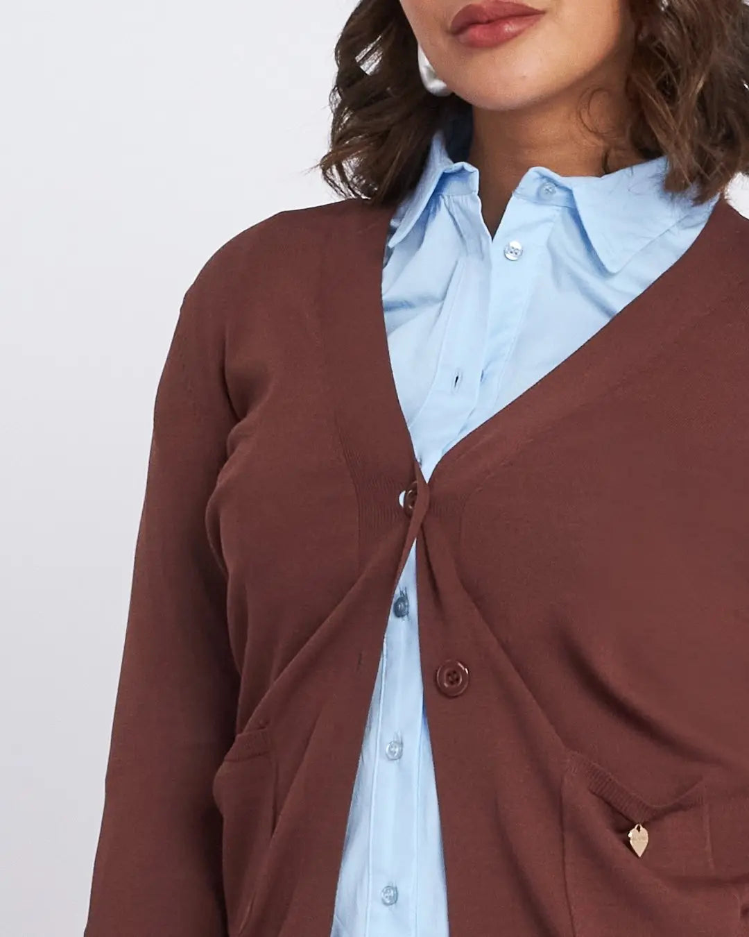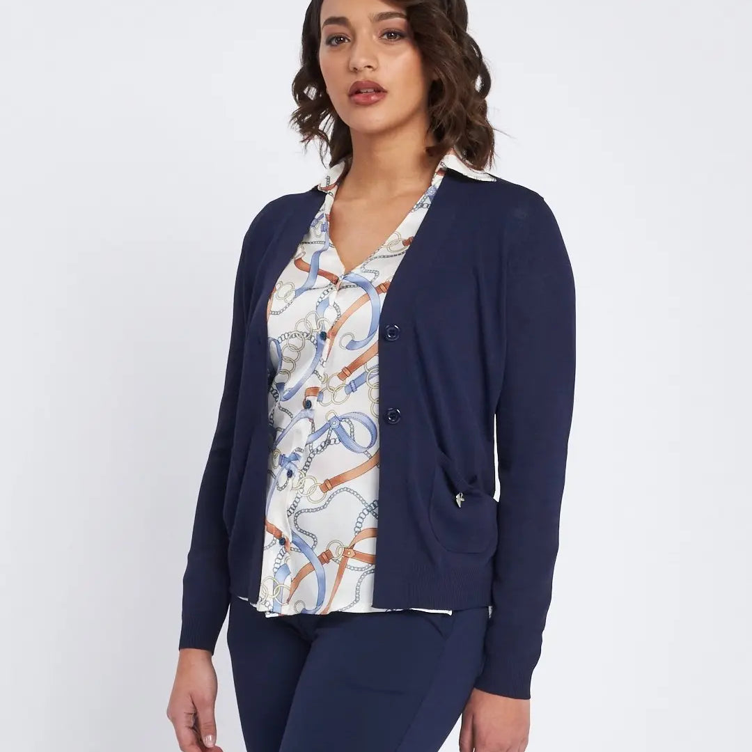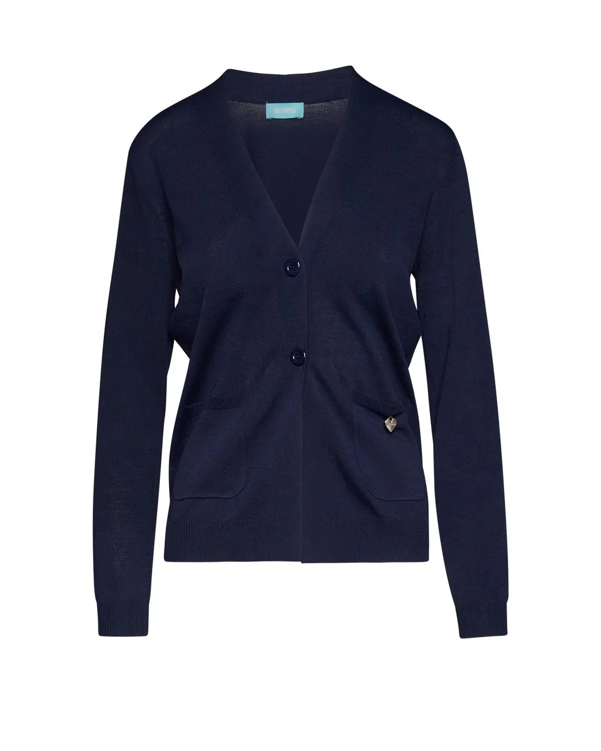Cárdigan de cuello en V con botones y bolsillos AZUL