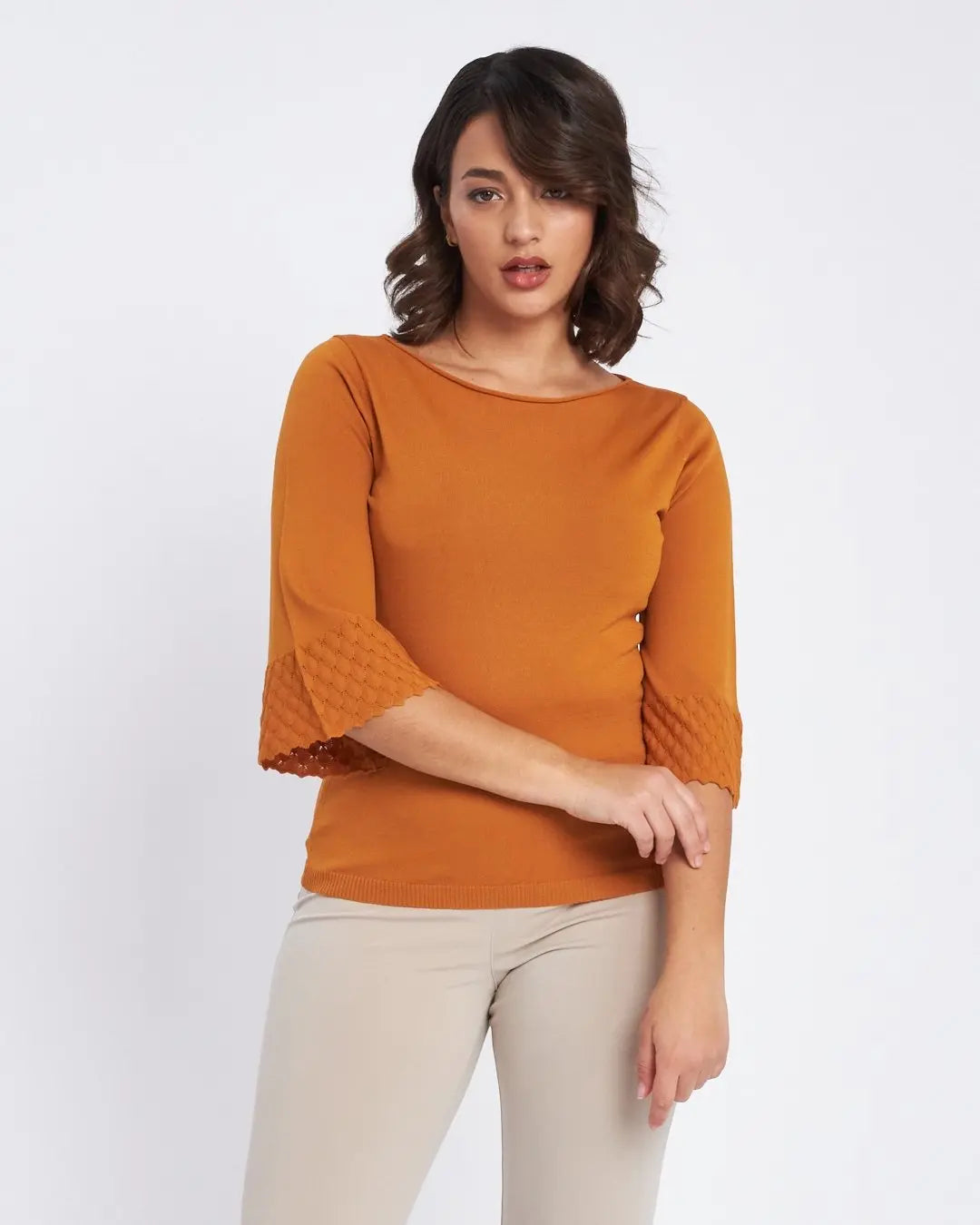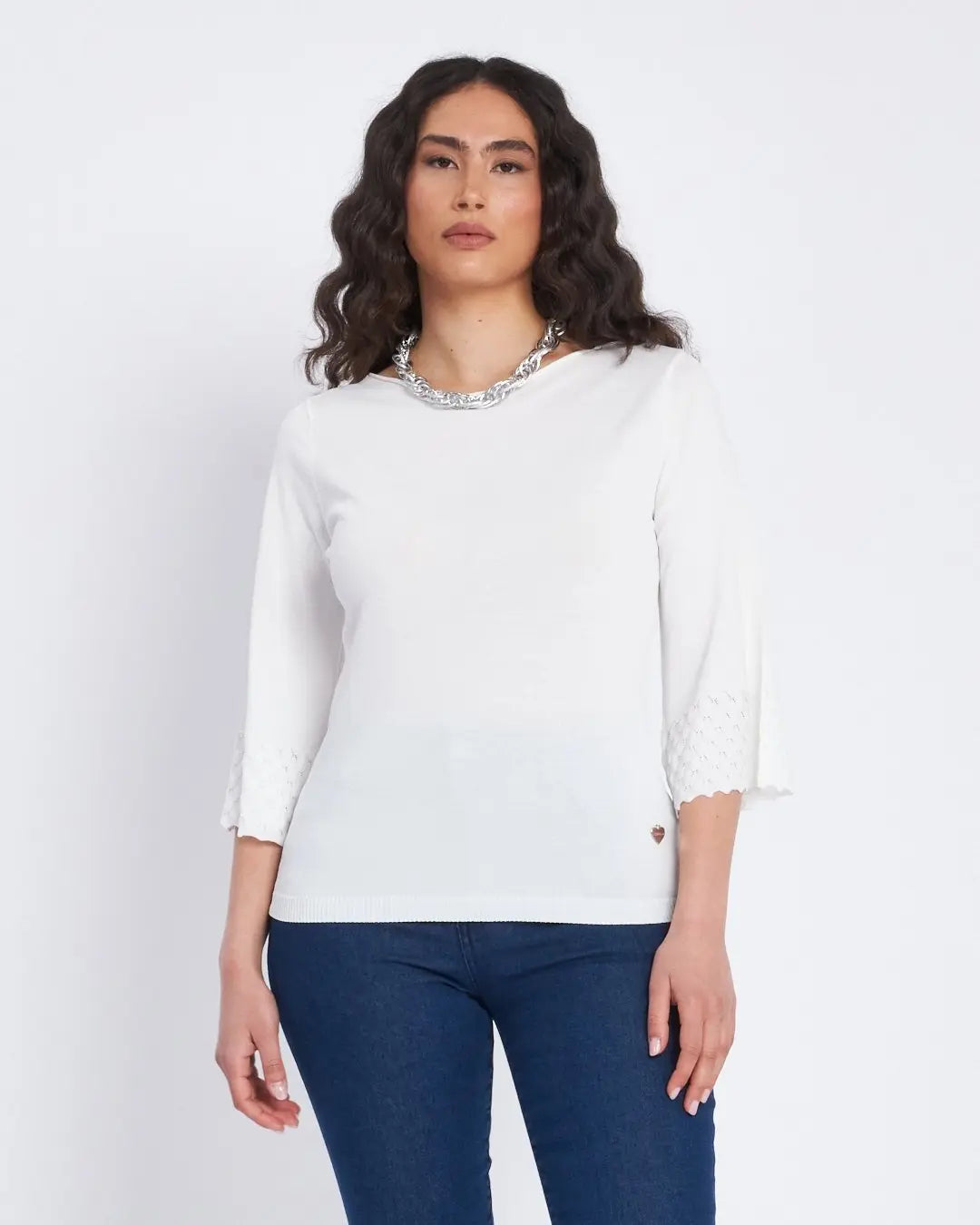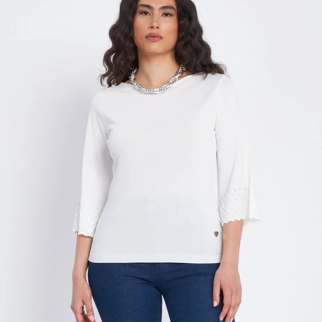 Suéter cuello barco y mangas 3/4 BLANCO