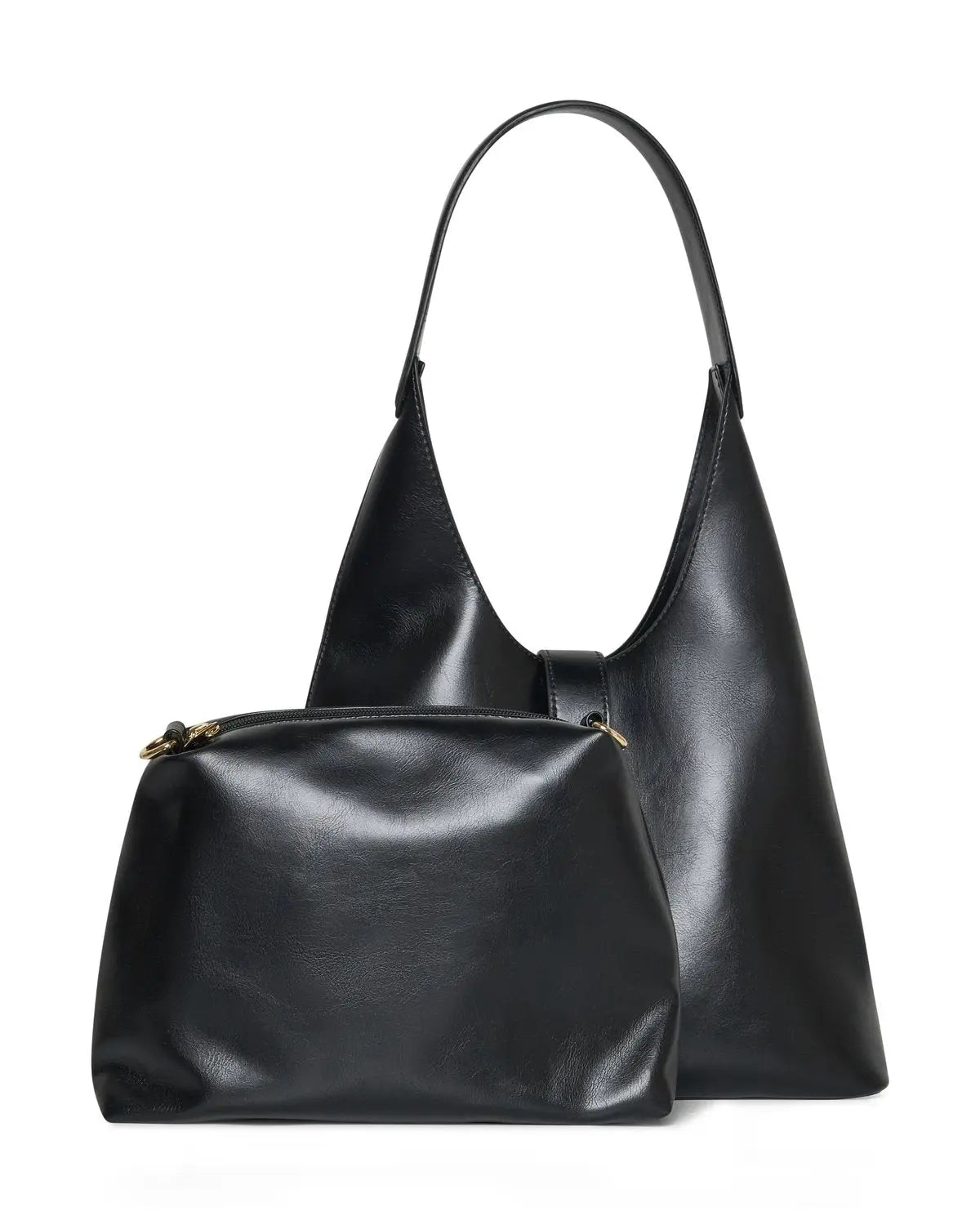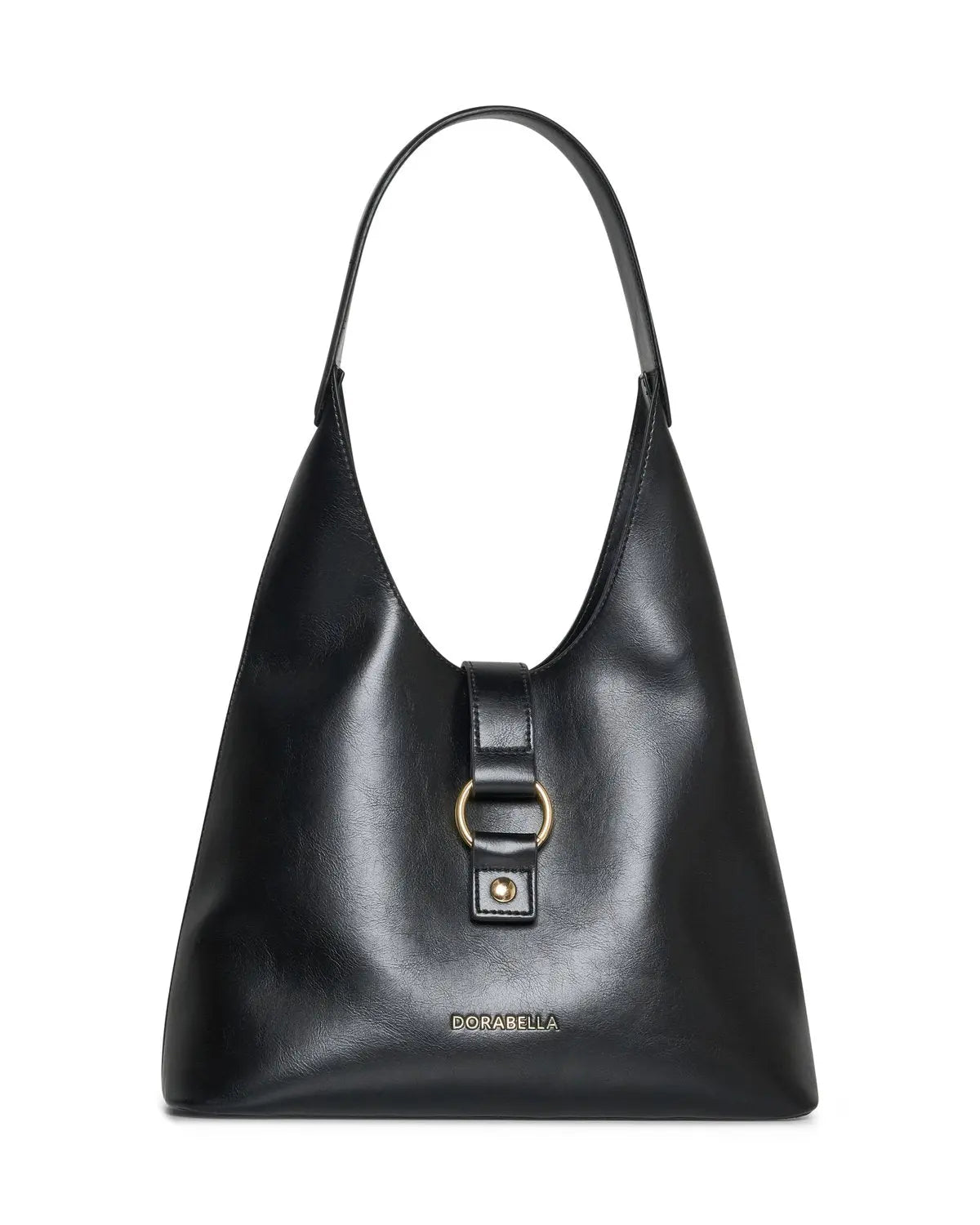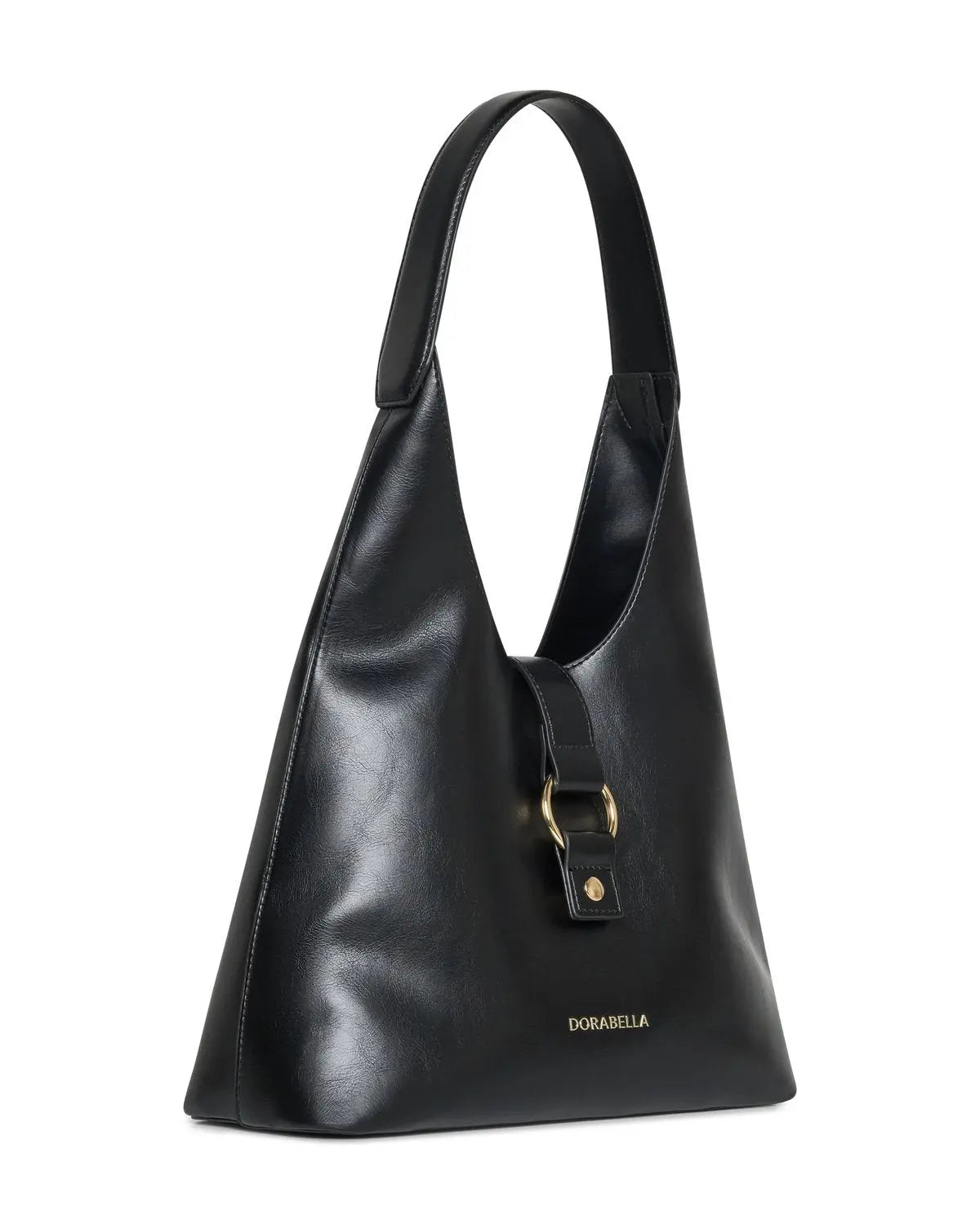 Bolso hobo en ecopiel con hebilla dorado claro NEGRO
