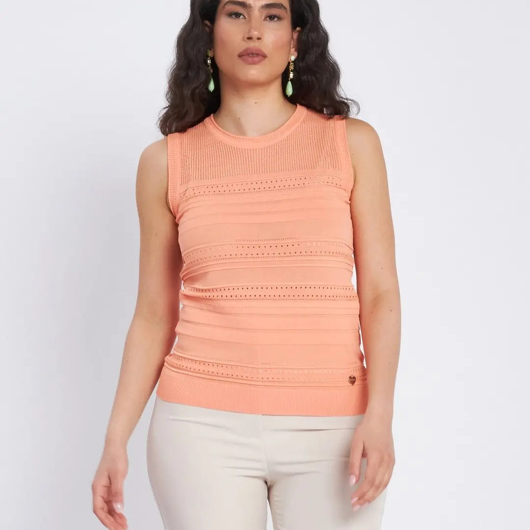 Suéter con sisa, canalé y perforaciones MELOCOTÓN