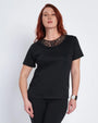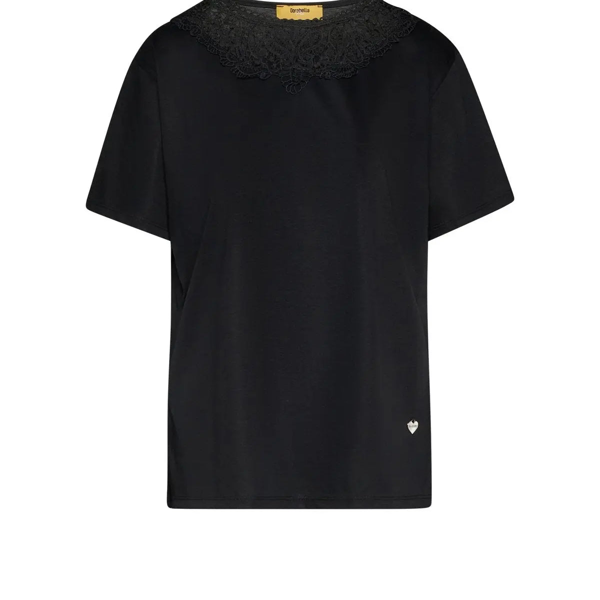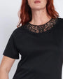 Camiseta con inserción de Sangallo en el cuello redondo NEGRO