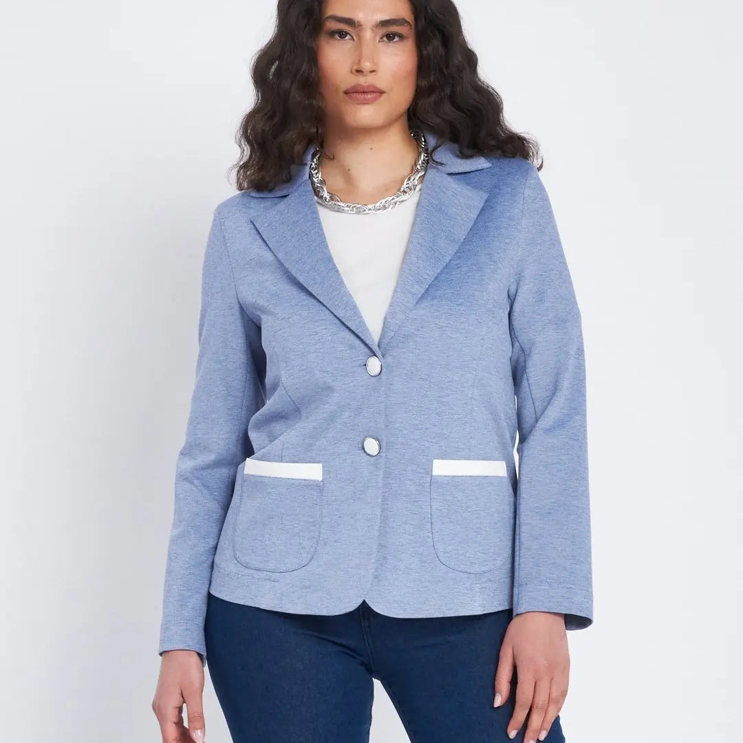 Chaqueta de abotonadura sencilla con bolsillos y contrastes DENIM