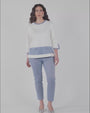 Blusa de punto milanés con inserciones de DENIM en contraste