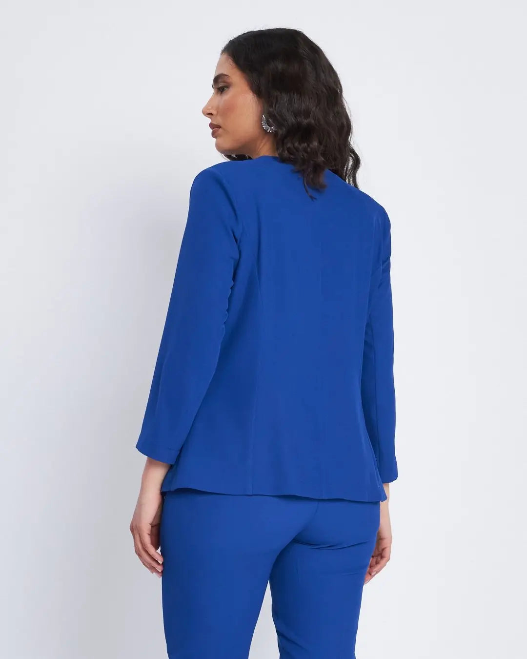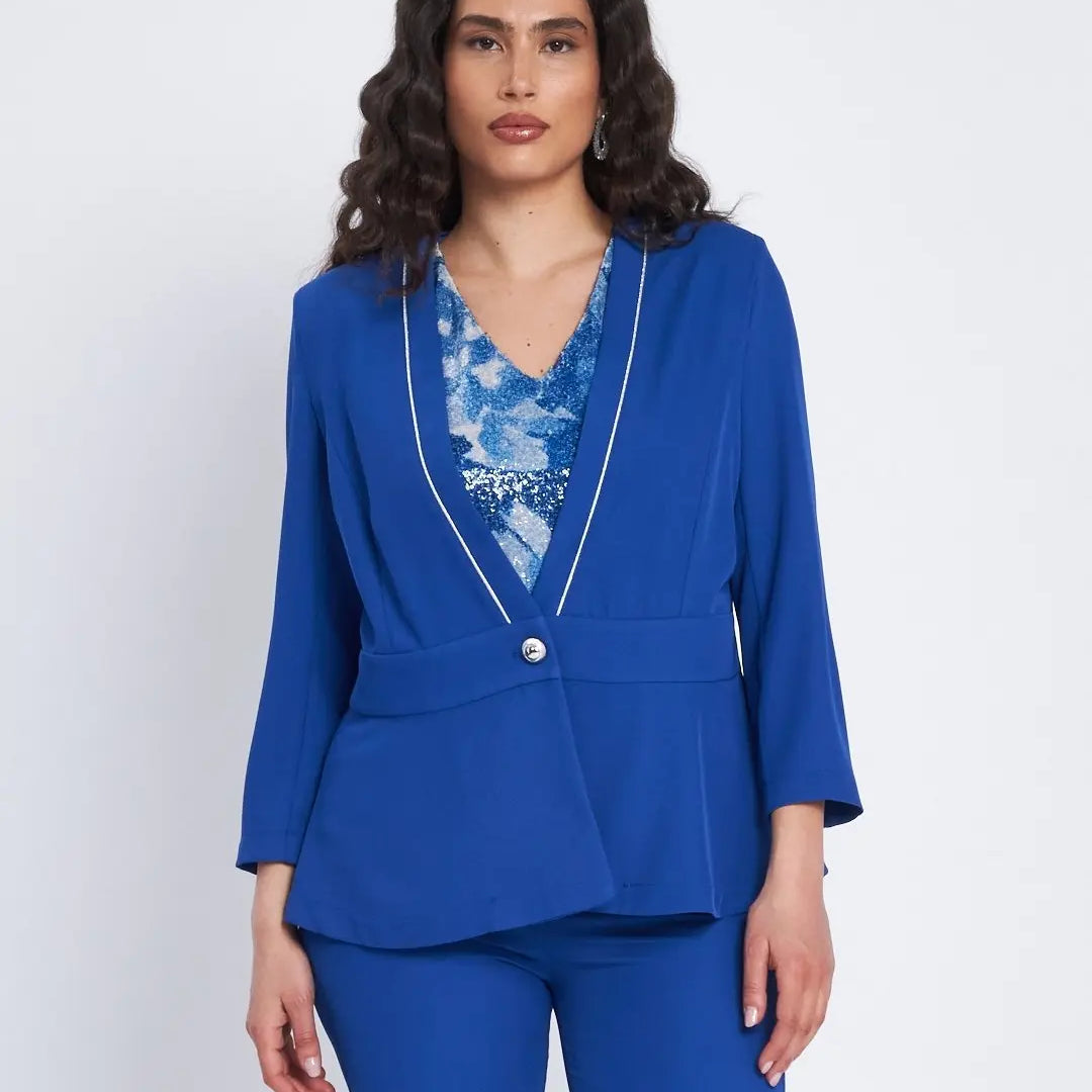 Chaqueta sin cuello con peplum y ribete AZUL CHINA