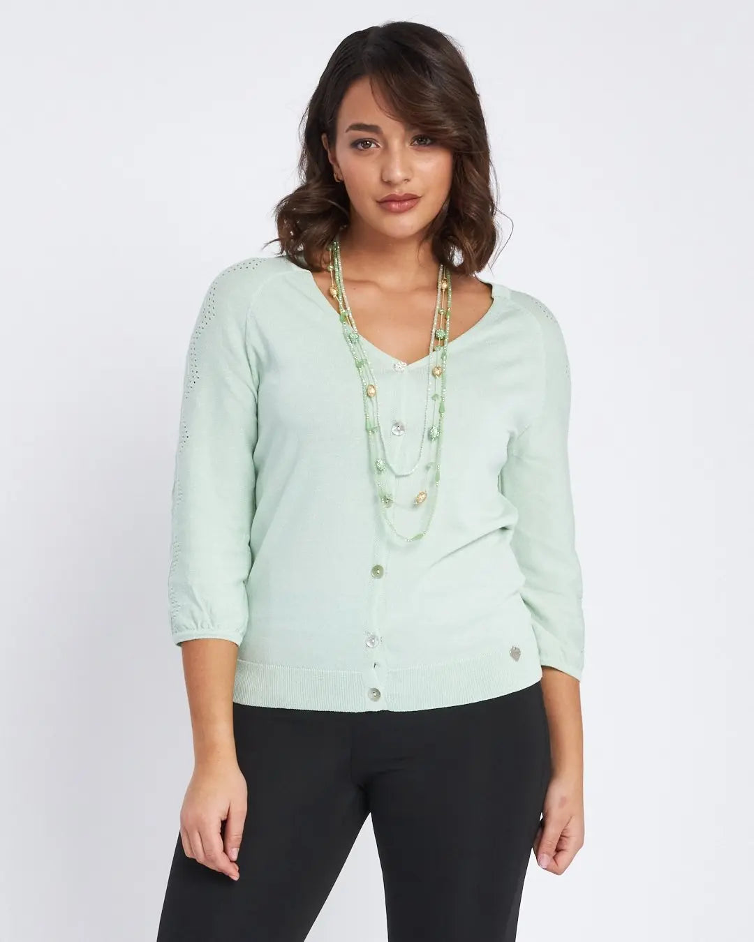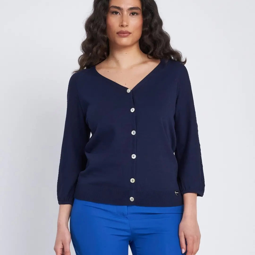 Cárdigan de cuello pico con botones y mangas caladas AZUL