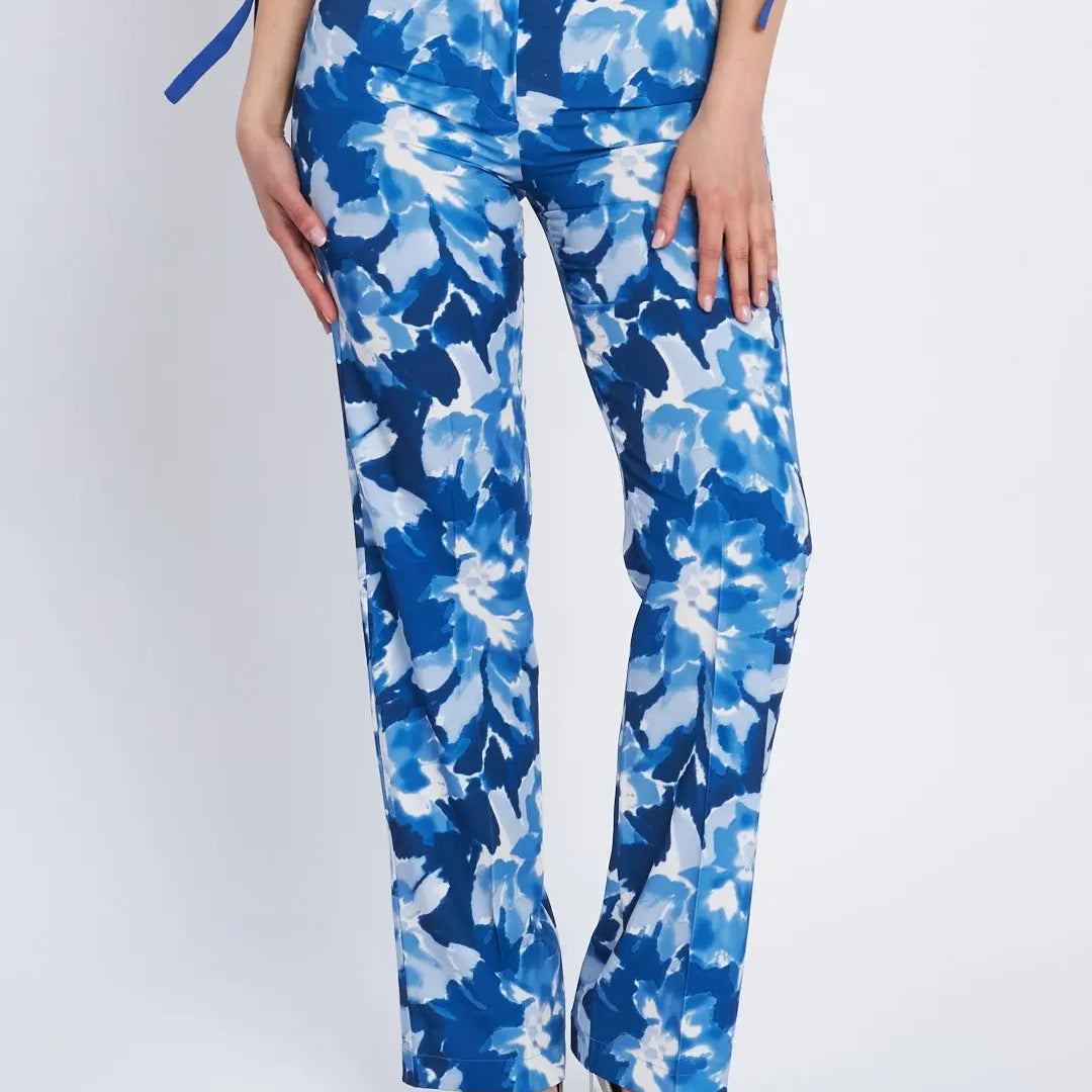 Pantalón de cady de corte recto con estampado AZUL CHINA