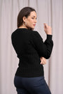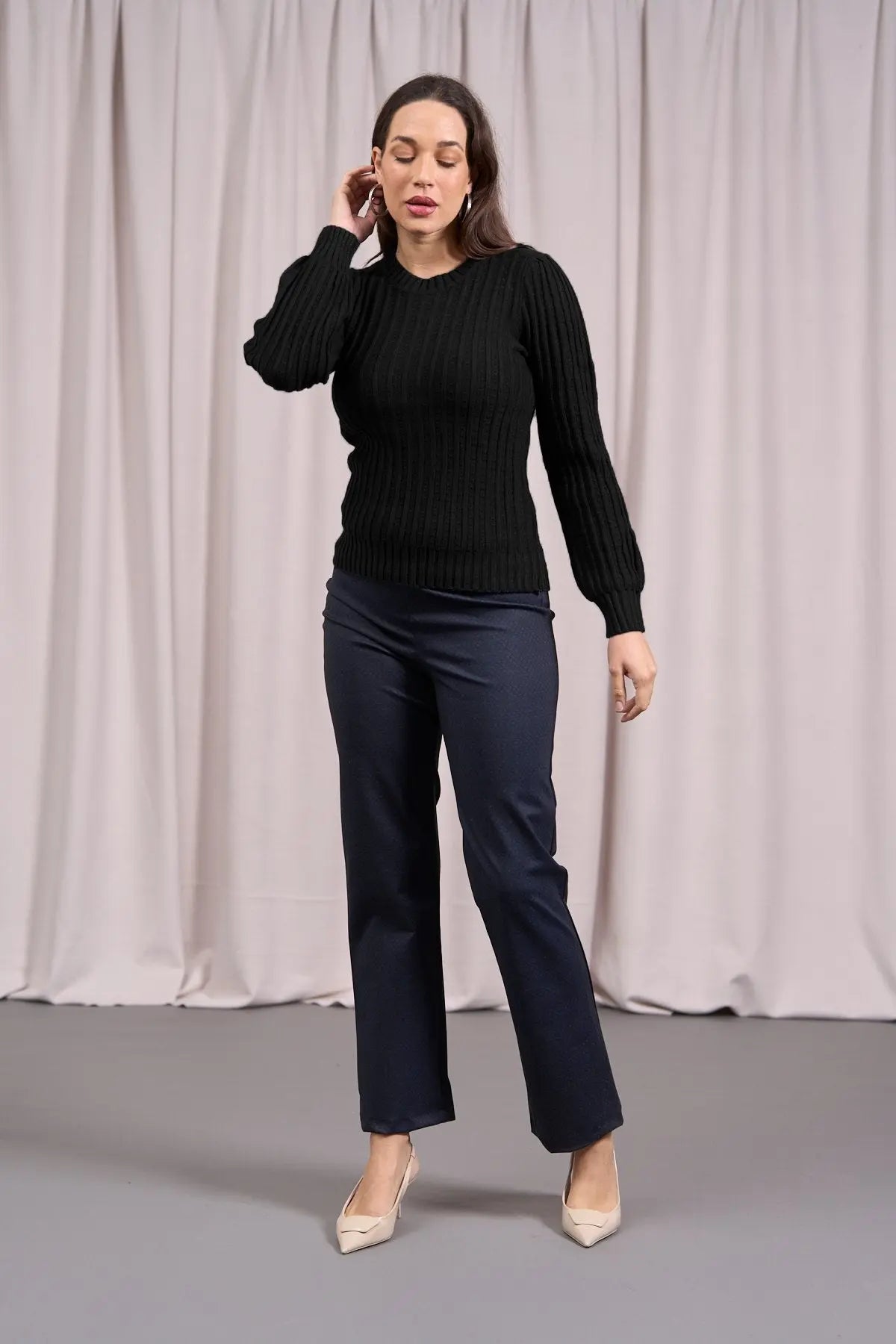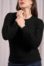 Jersey de cuello redondo con estampado de canalé y lurex NEGRO