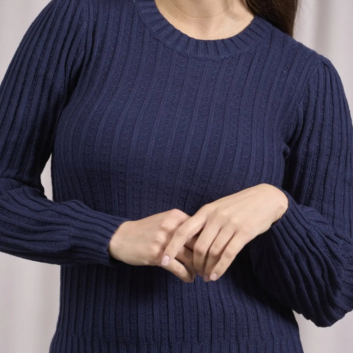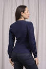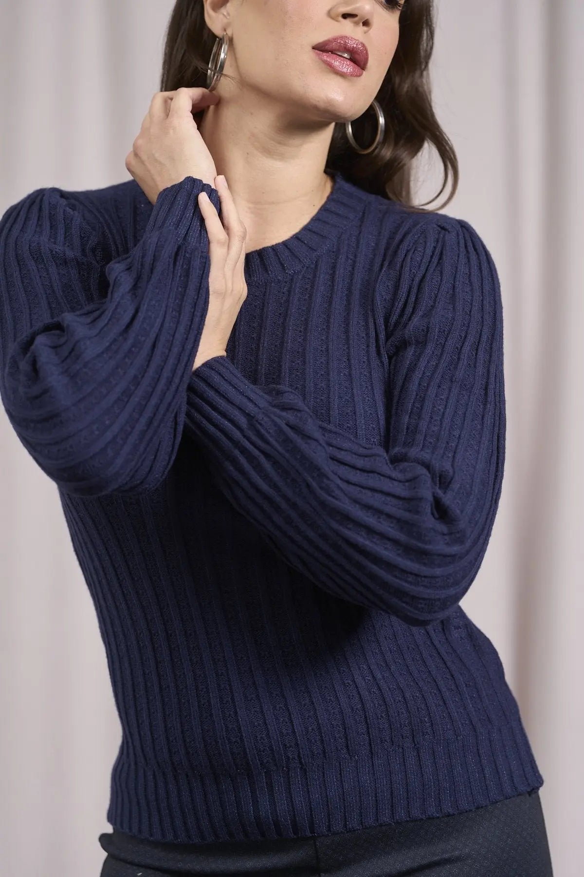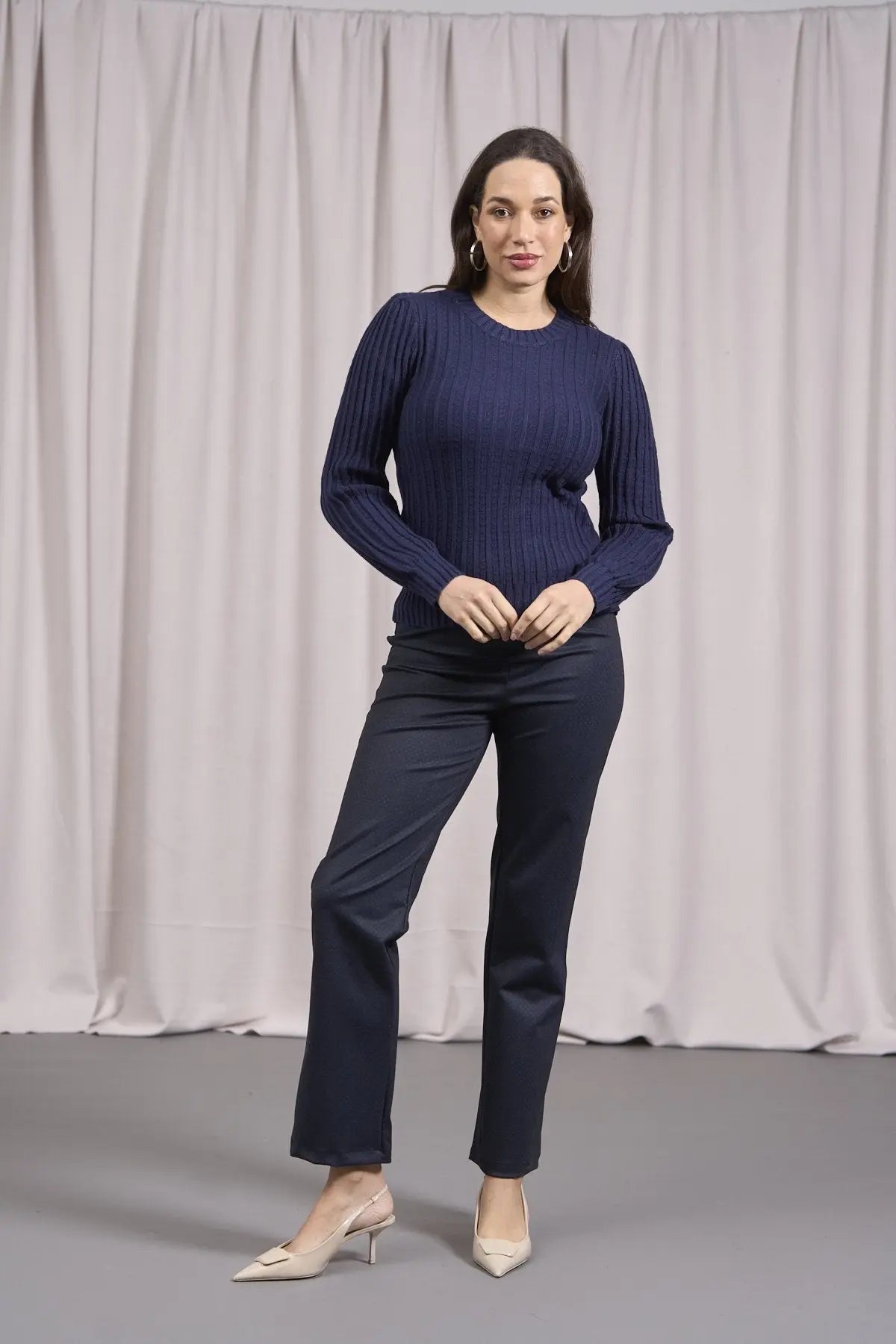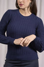 Jersey de cuello redondo con estampado de canalé y lurex AZUL