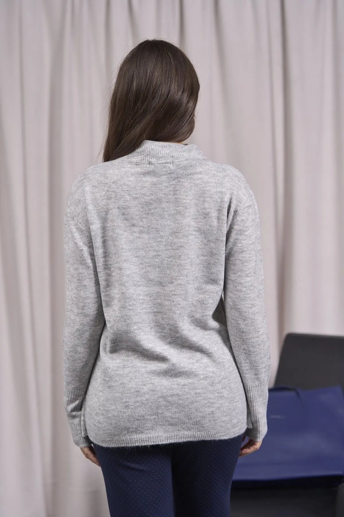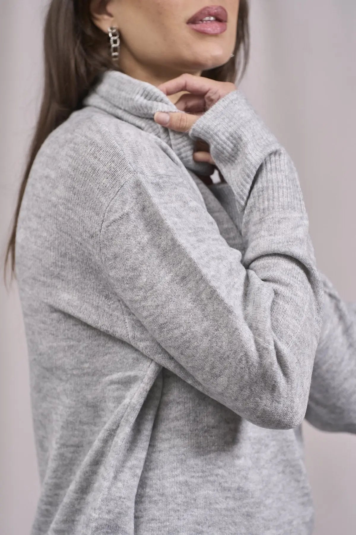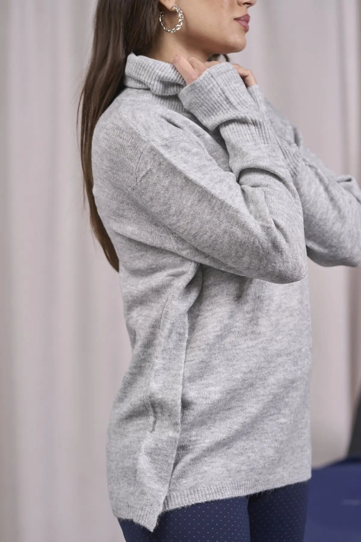 Suéter de cuello alto con vuelta y aberturas GRIS