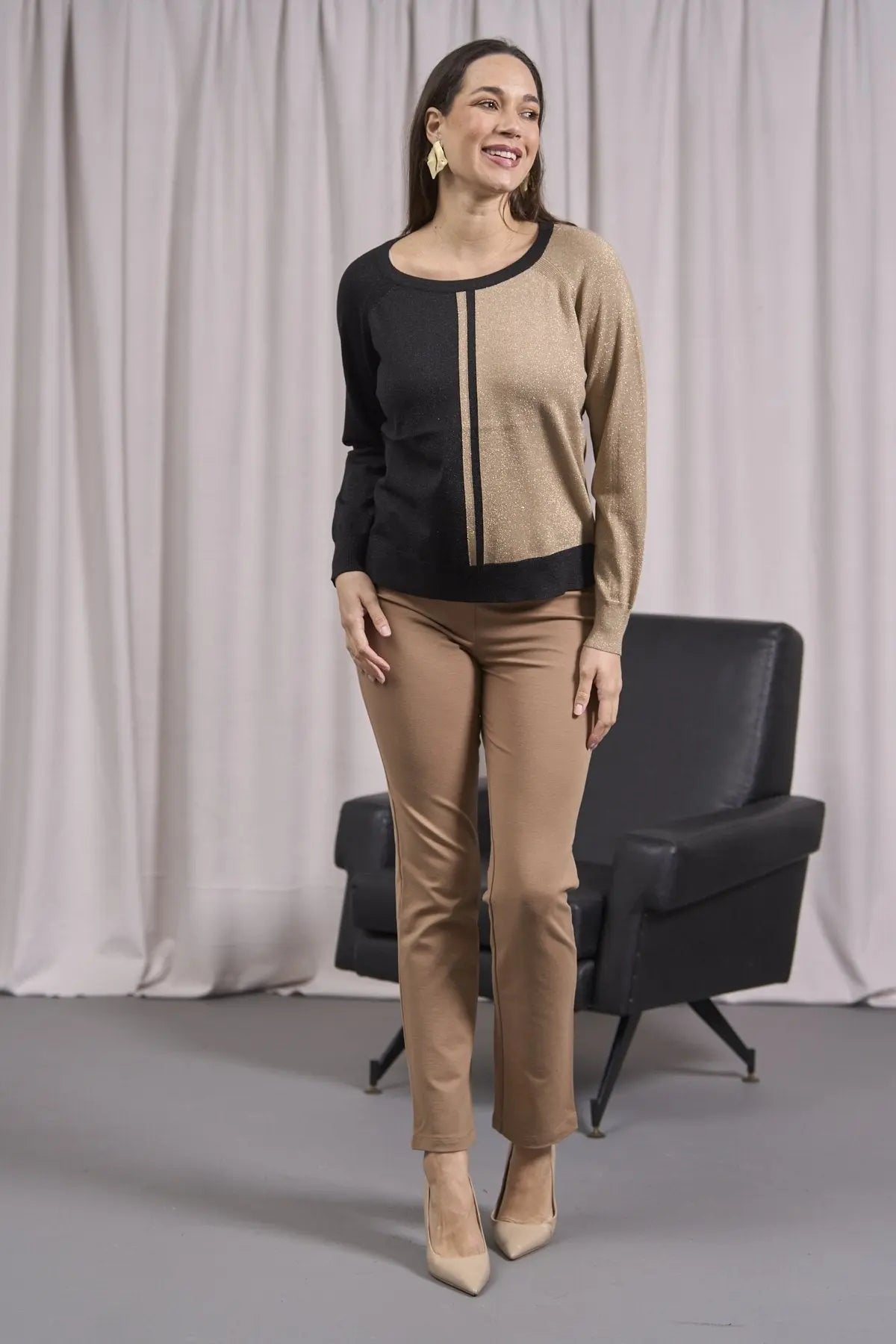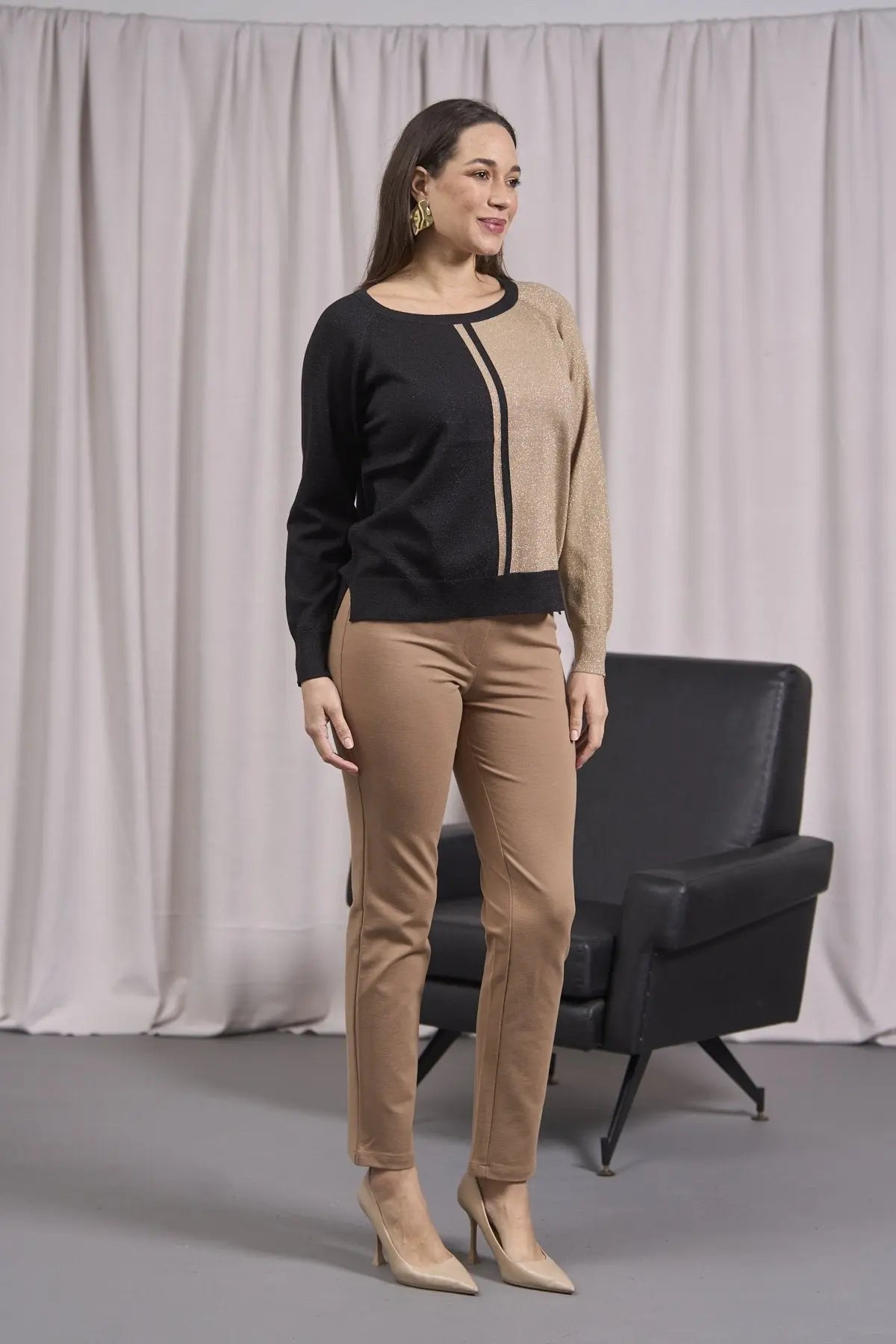 Jersey bicolor con rayas delanteras NEGRO-CAMEL