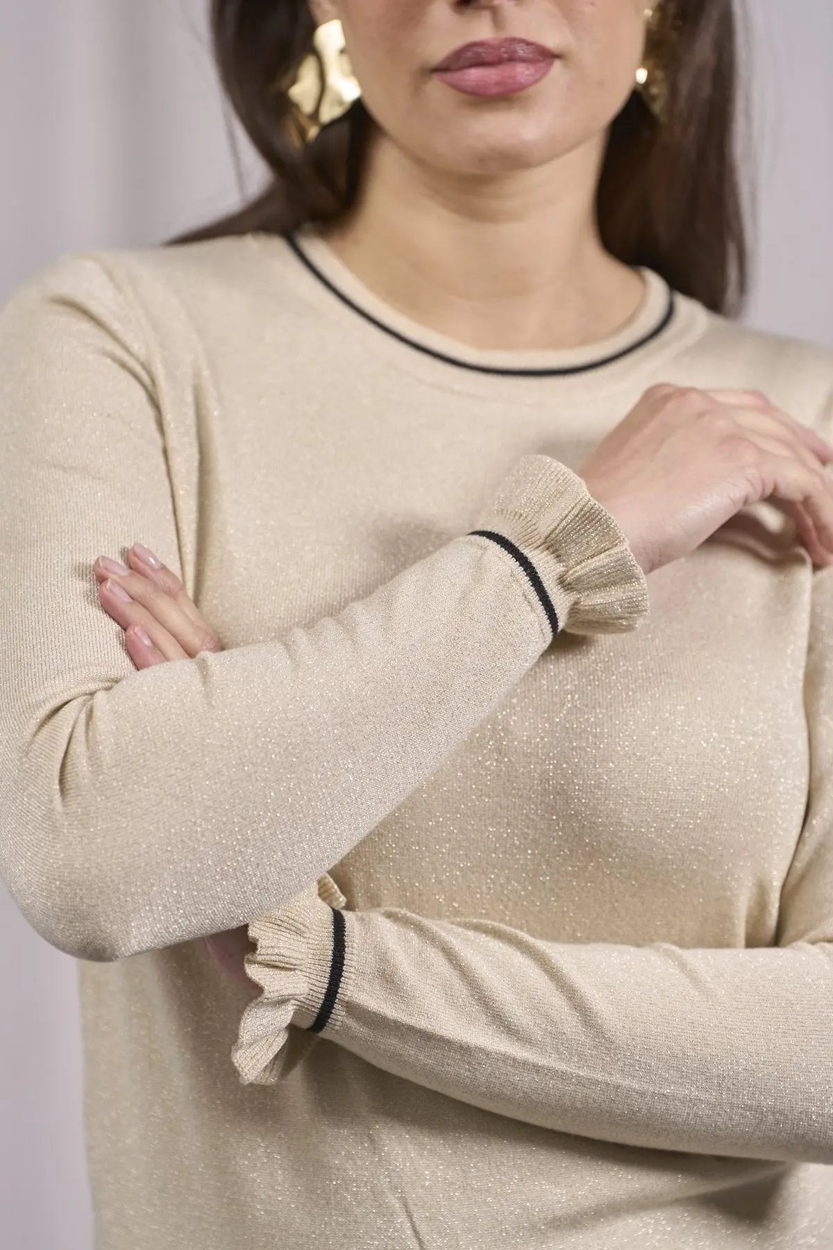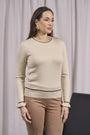 Suéter de cuello redondo con ribetes y volantes en los puños MARFIL