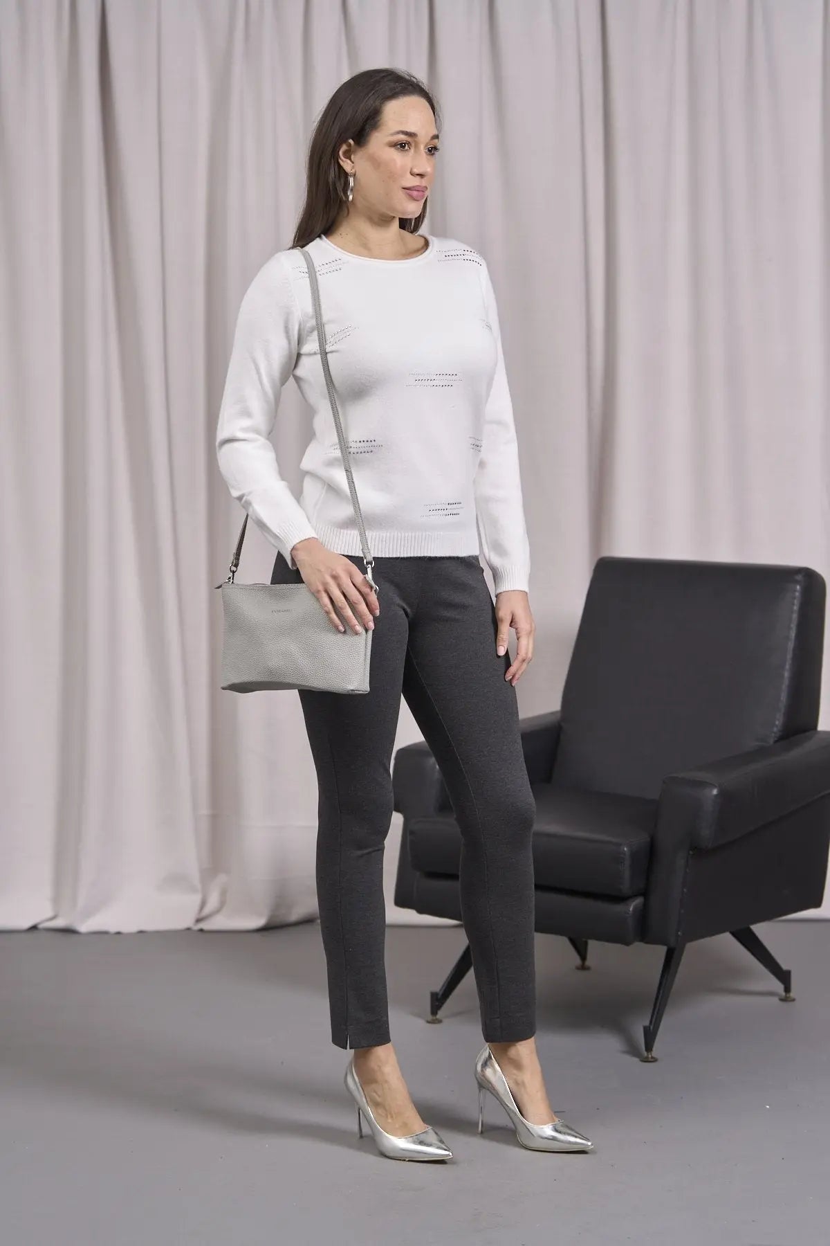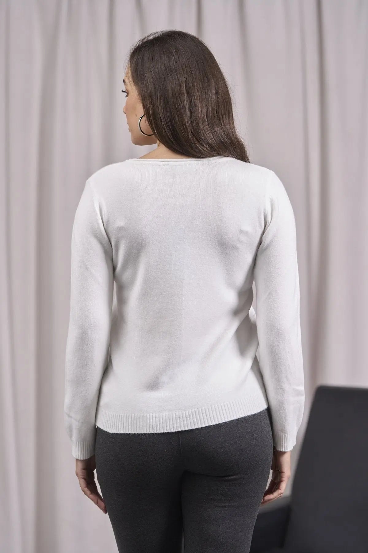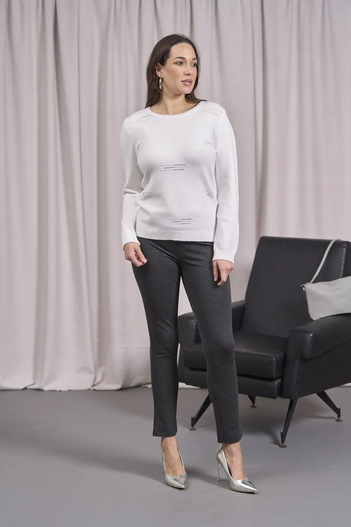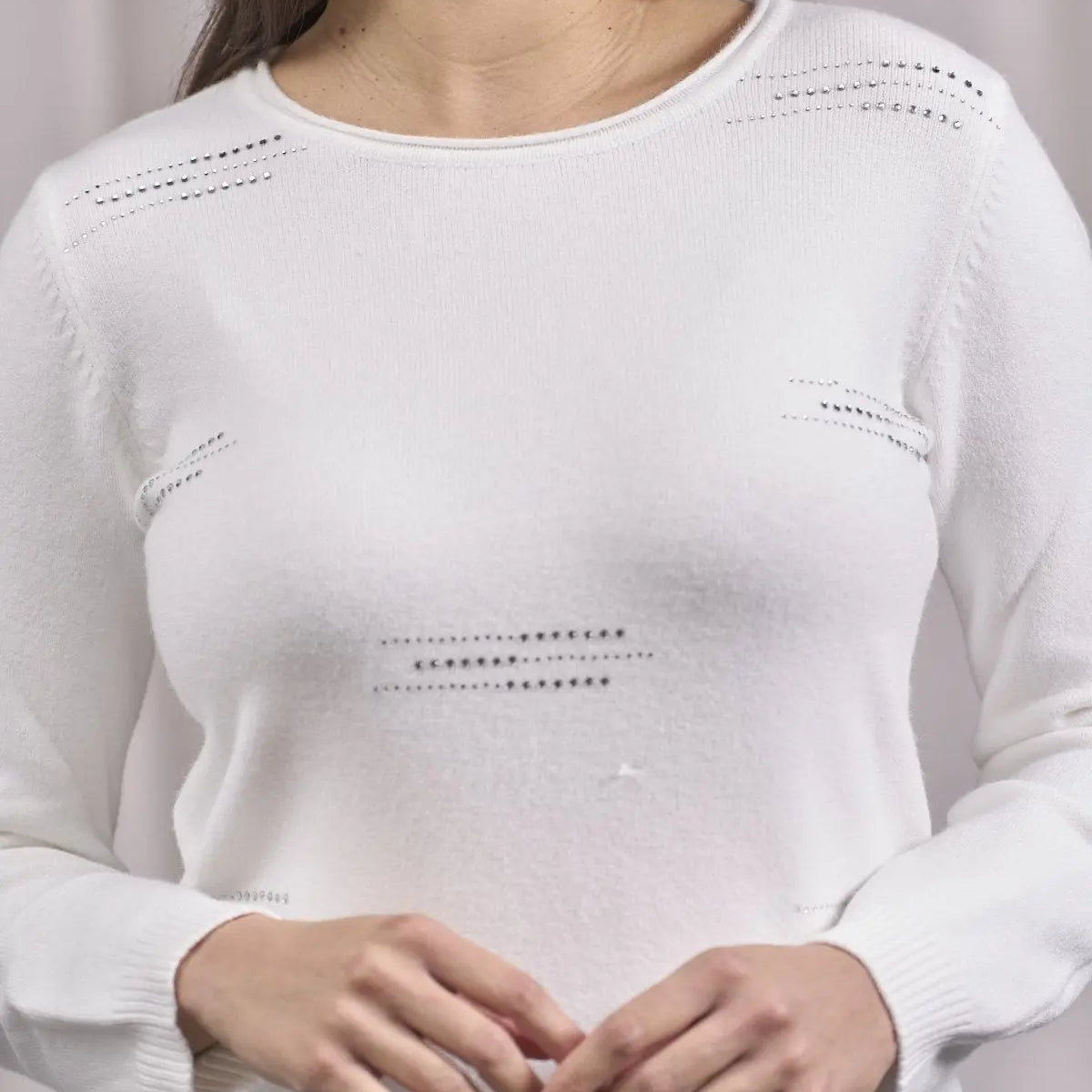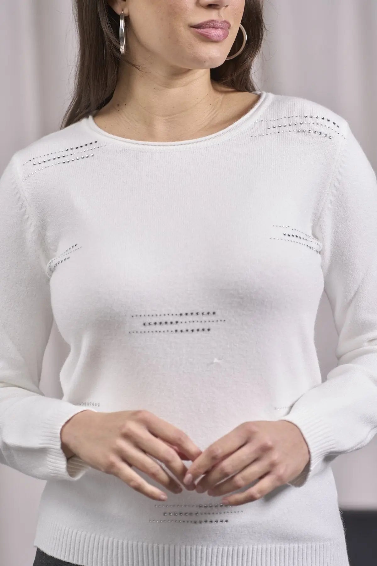 Suéter de cuello redondo con aplicaciones de pedrería en la parte delantera CREMA