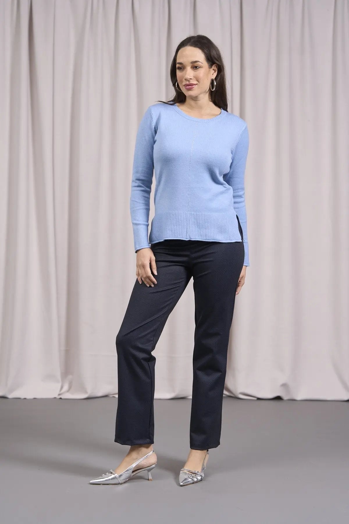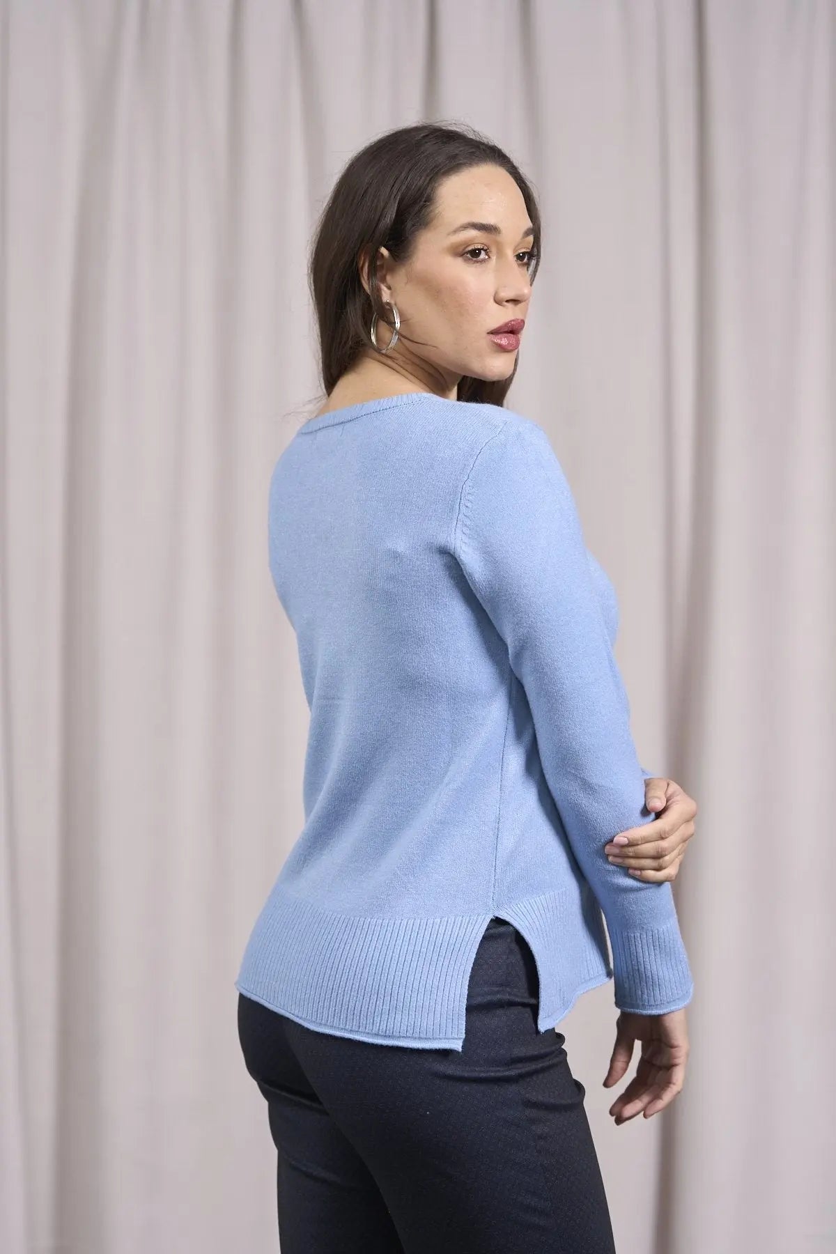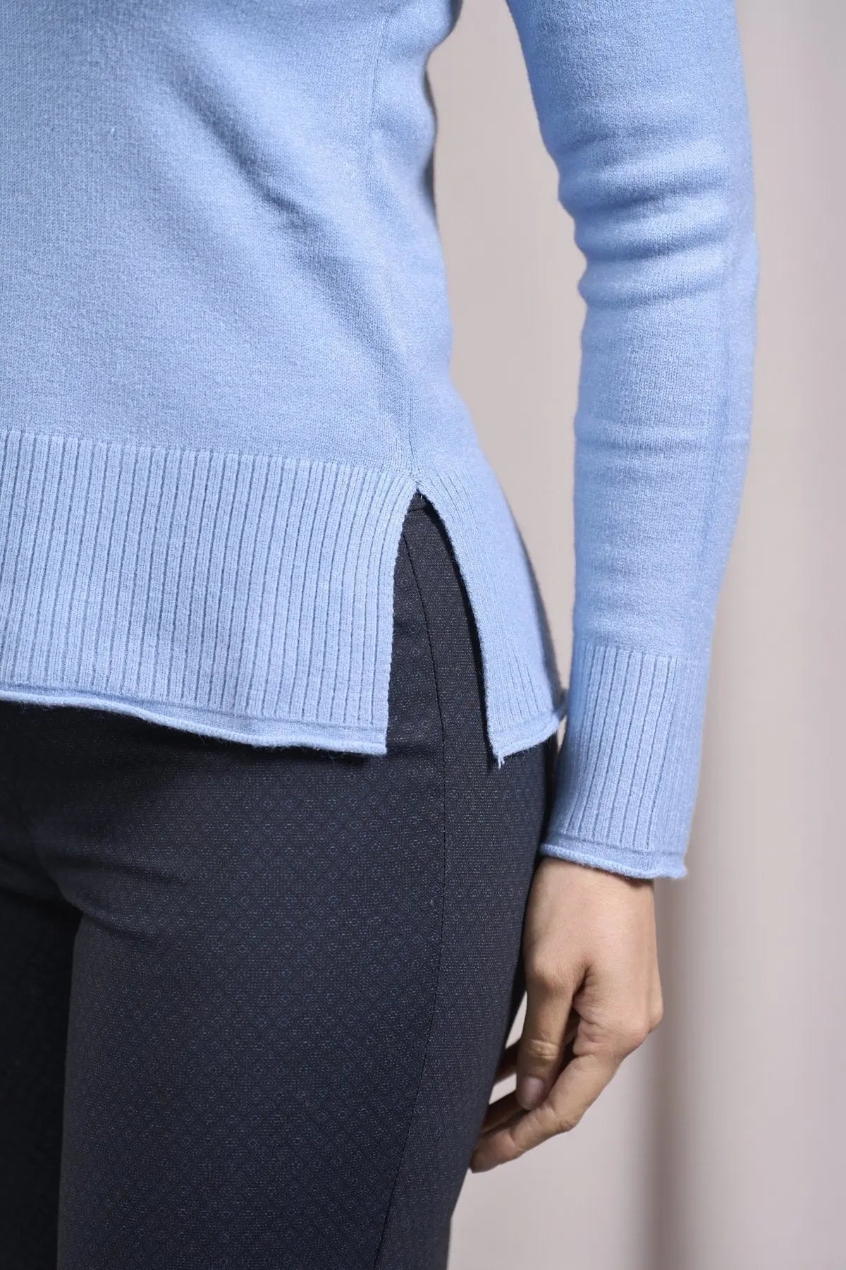 Jersey de cuello redondo con corte crudo, aberturas y canalé SKY