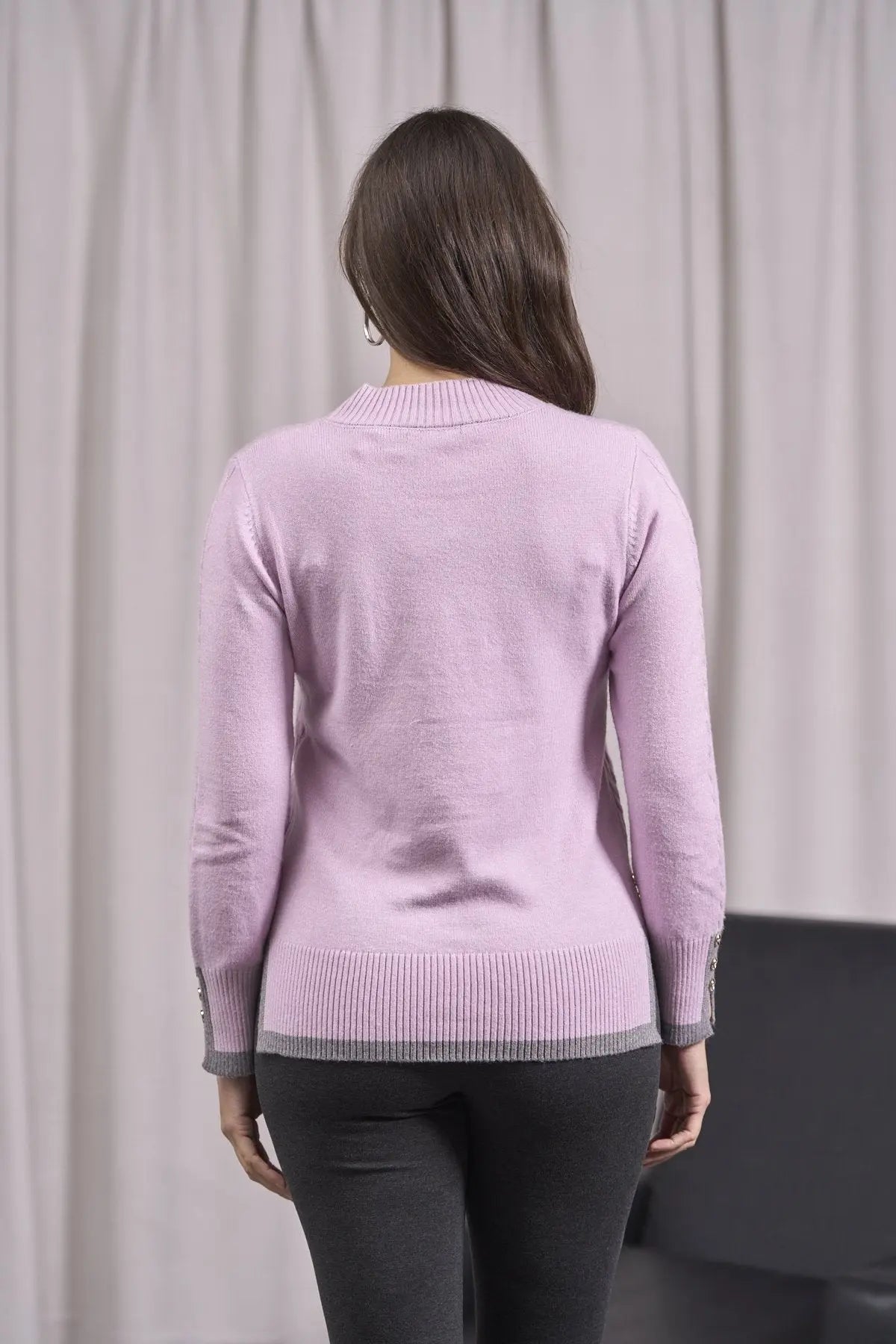 Suéter con trenzas, aberturas y bordes en contraste ROSA