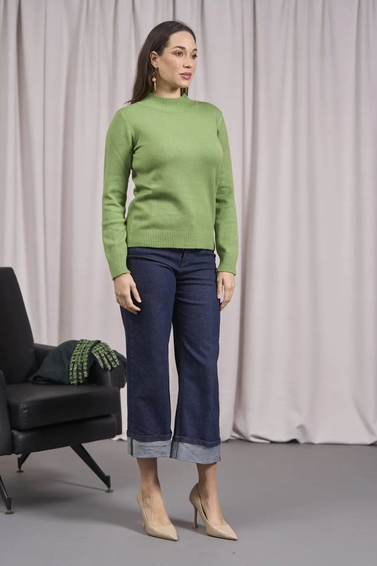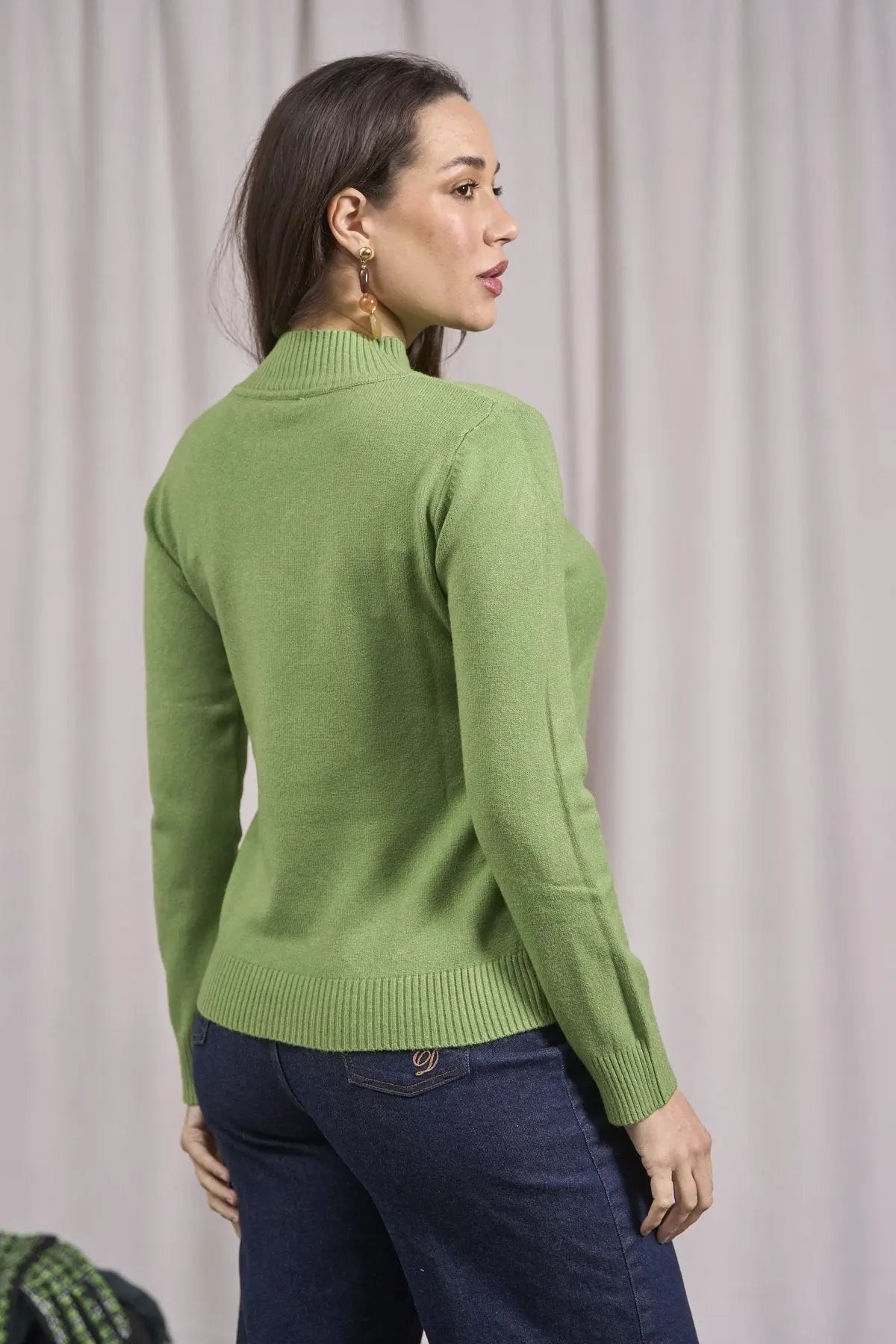 Suéter de cuello medio con aberturas VERDE BOSQUE