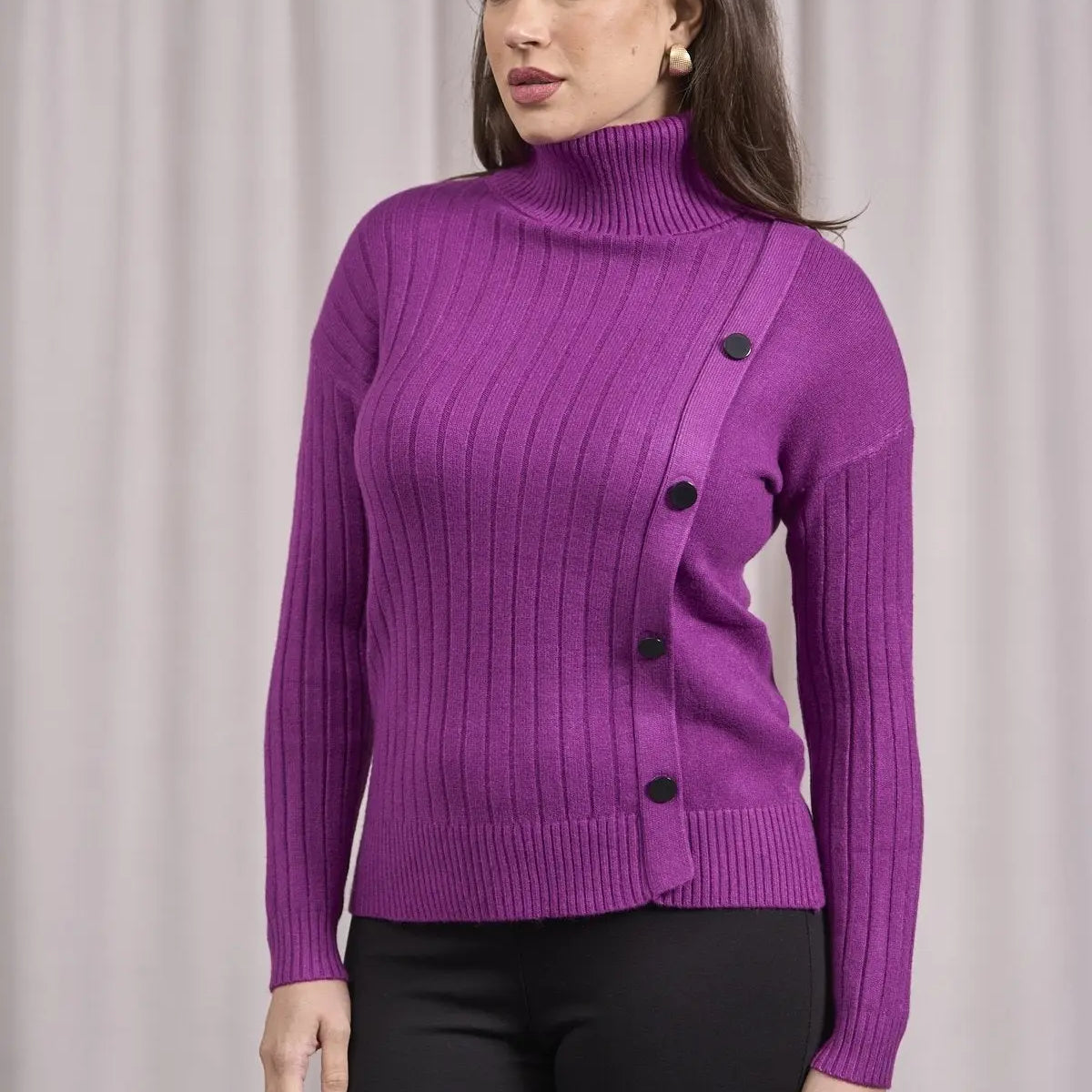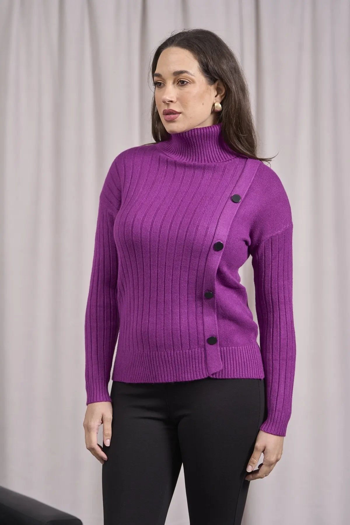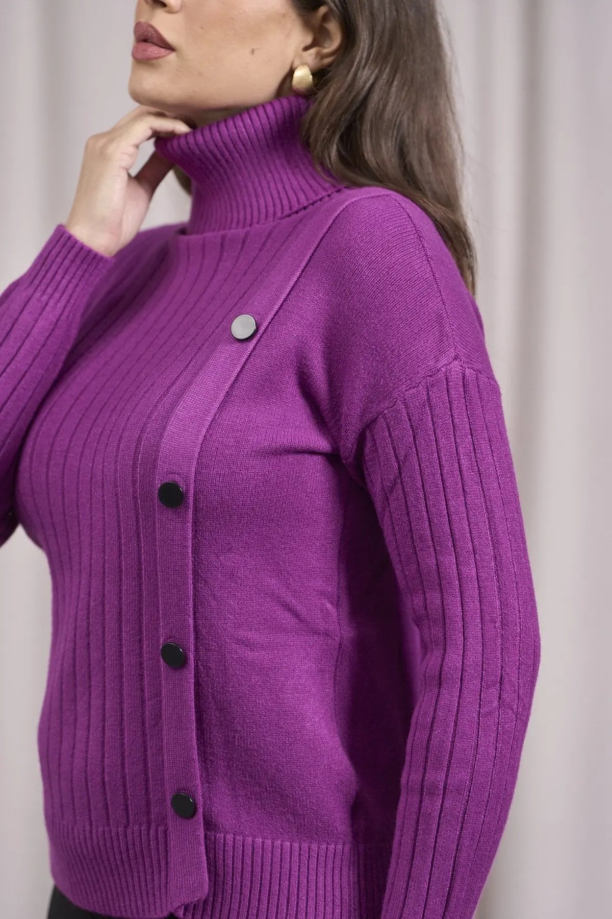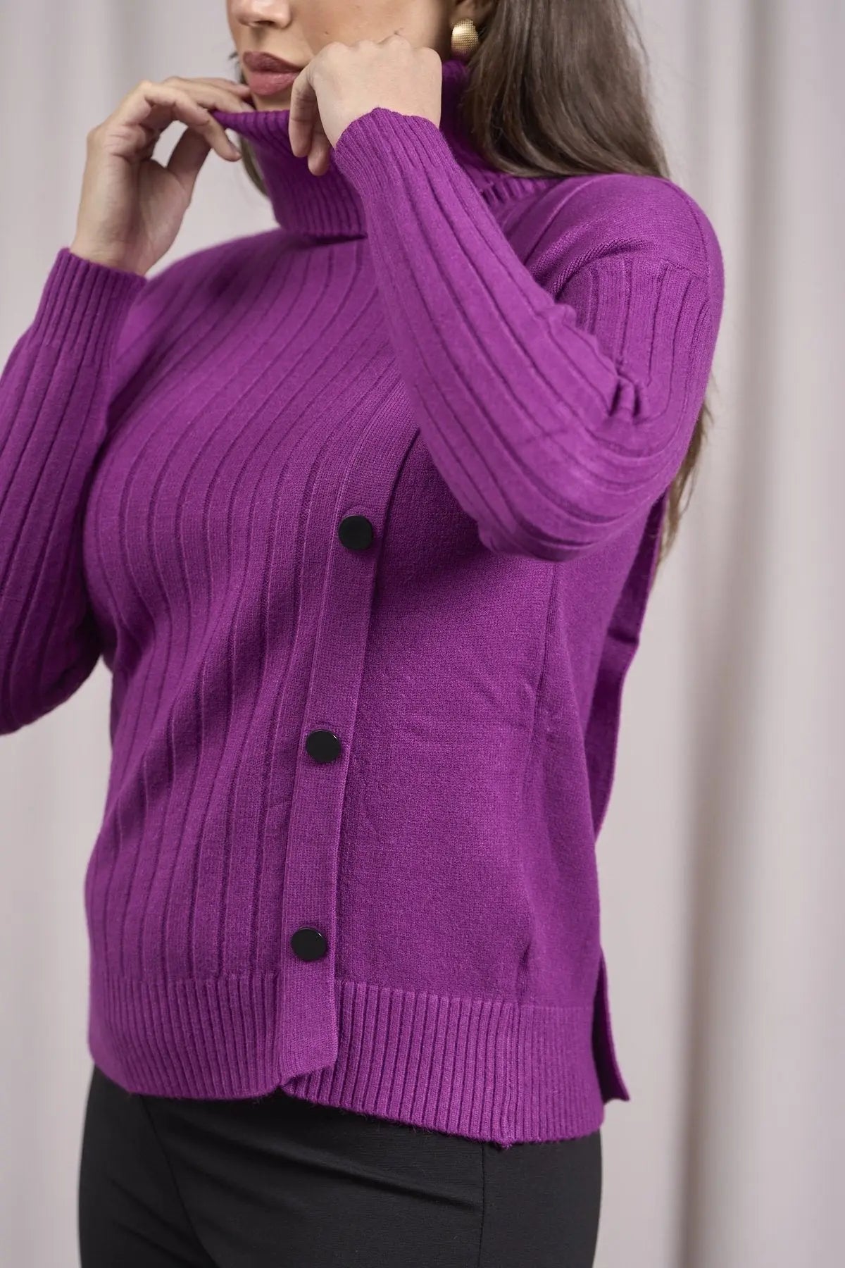 Suéter de cuello alto con botones laterales ORCHIDEA