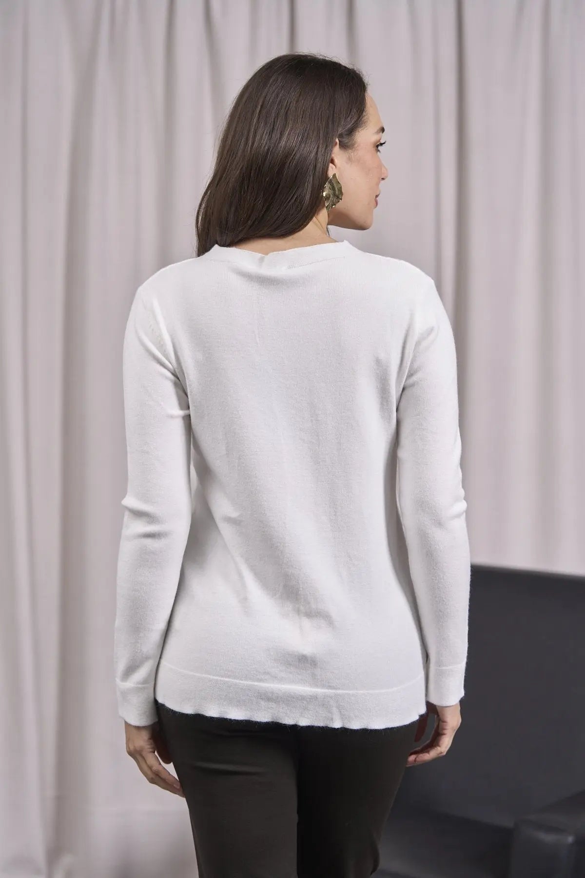 Suéter de cuello redondo con motivo frontal en color CREMA
