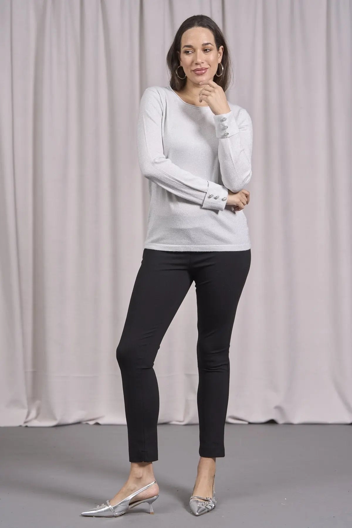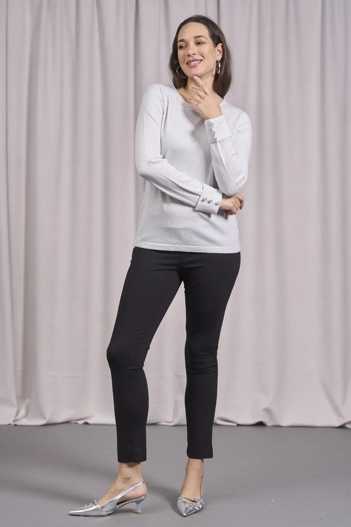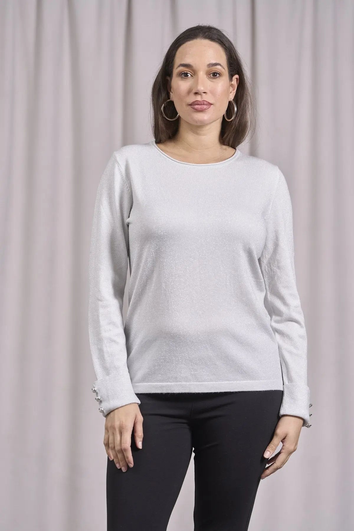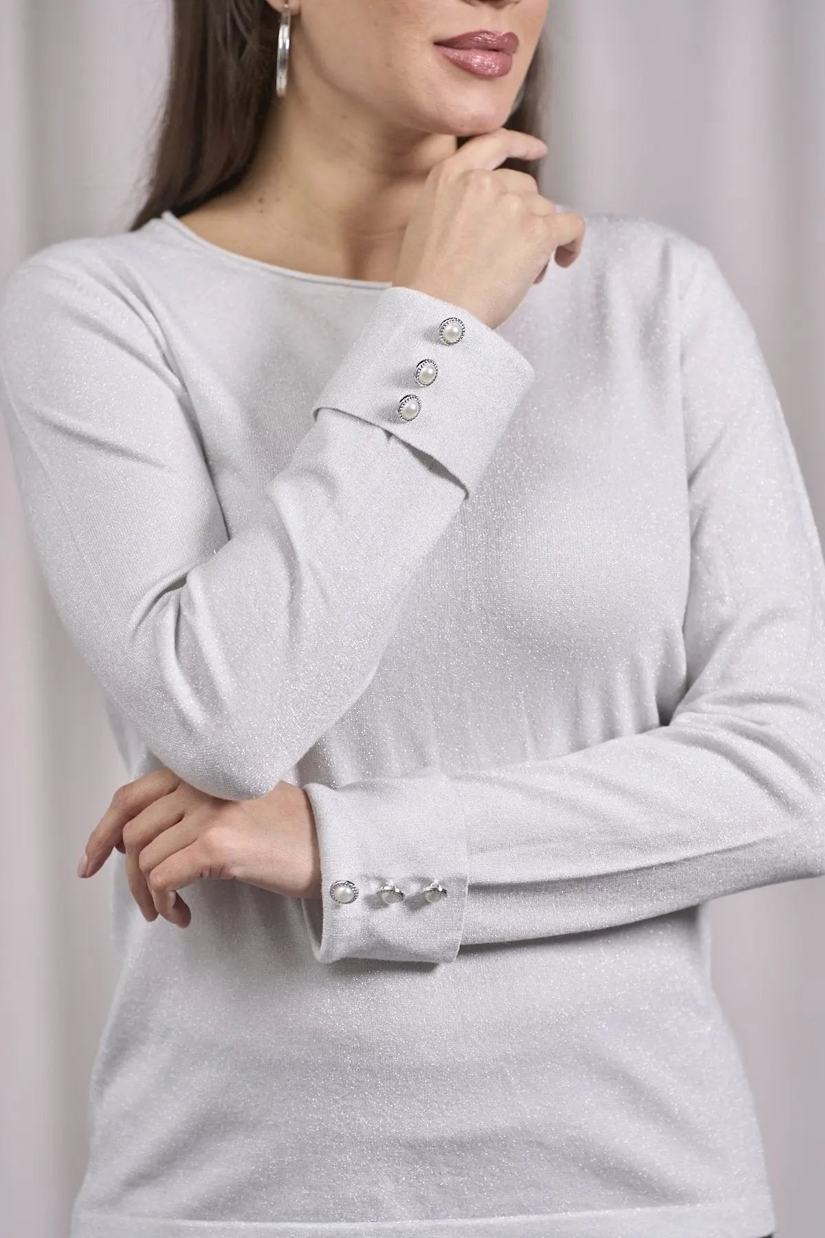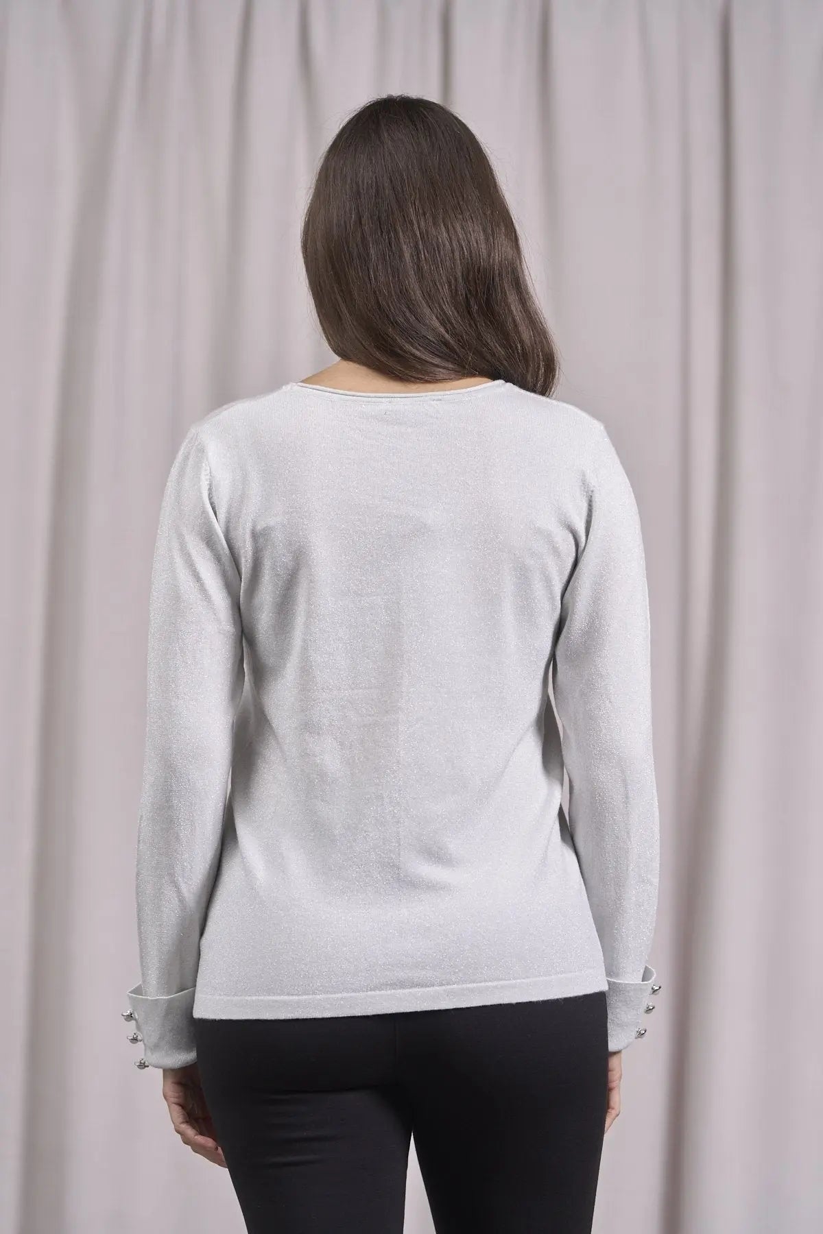Suéter de cuello redondo con decoración de pedrería PERLA