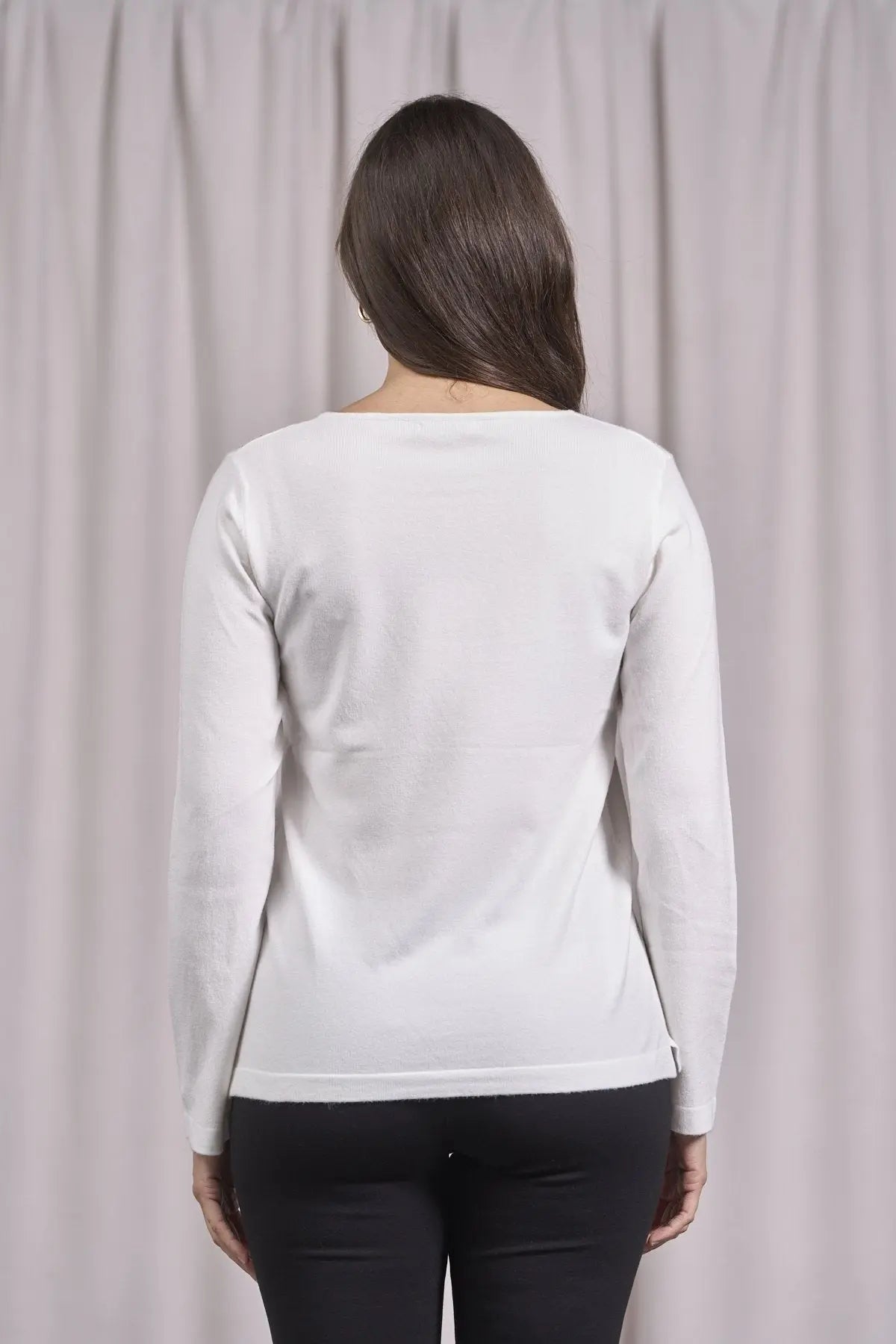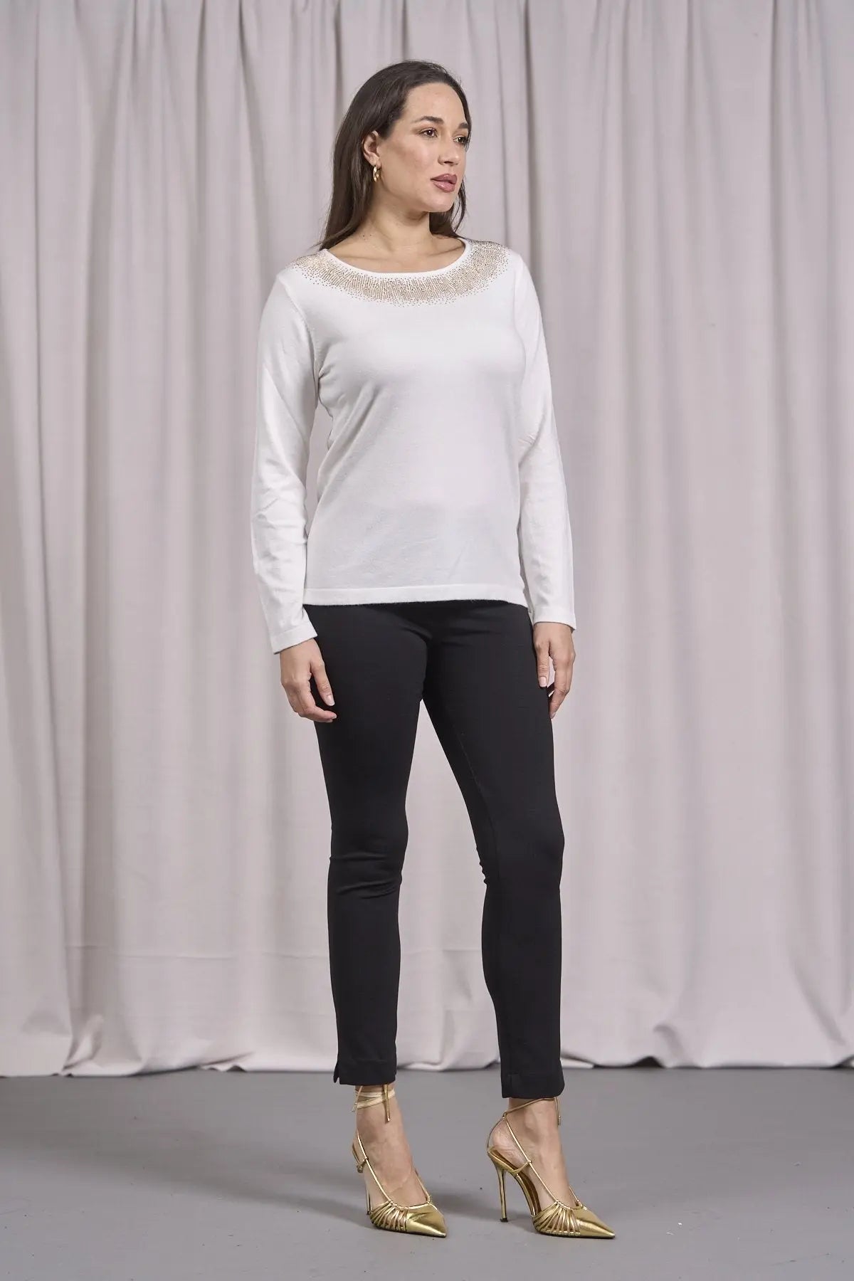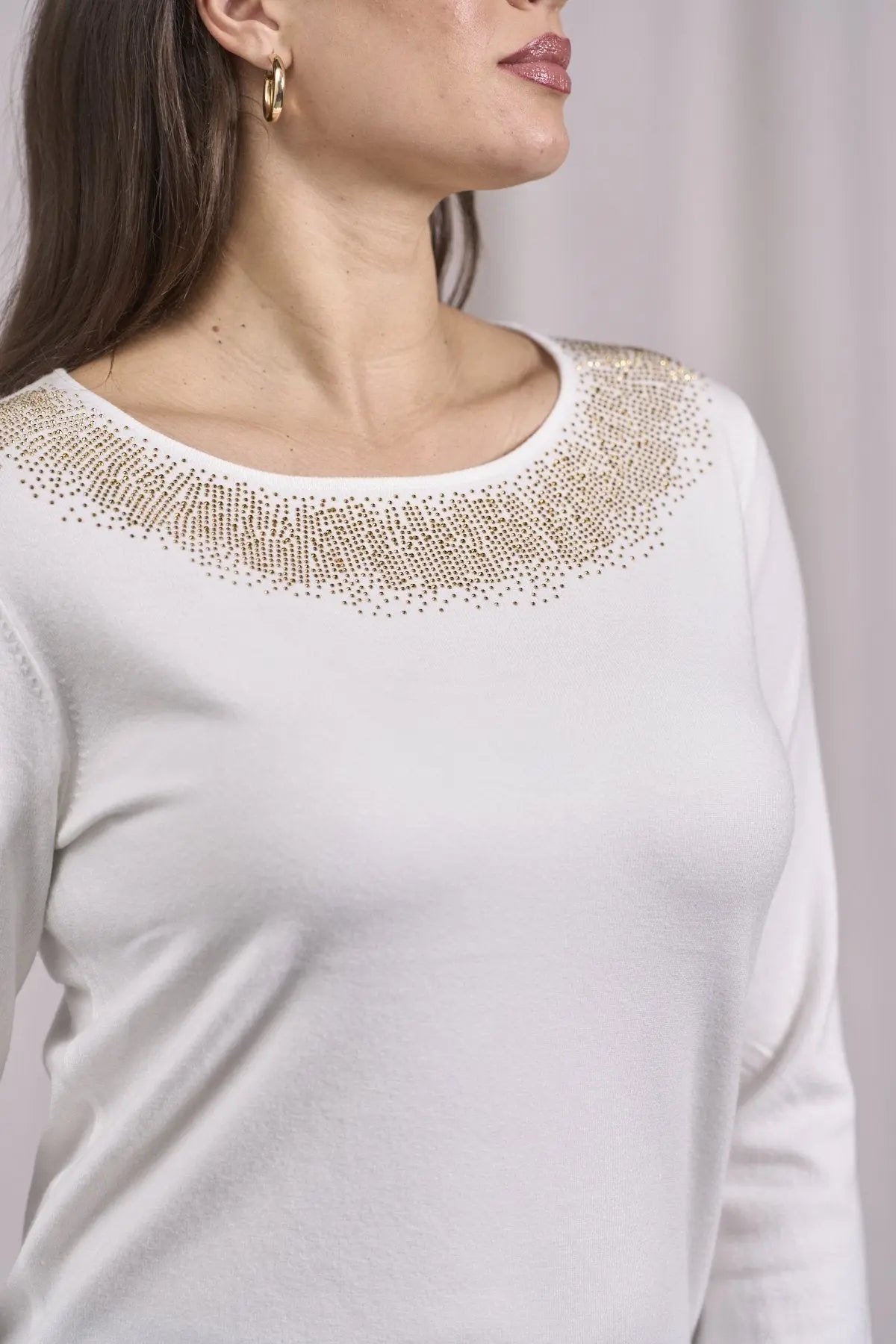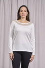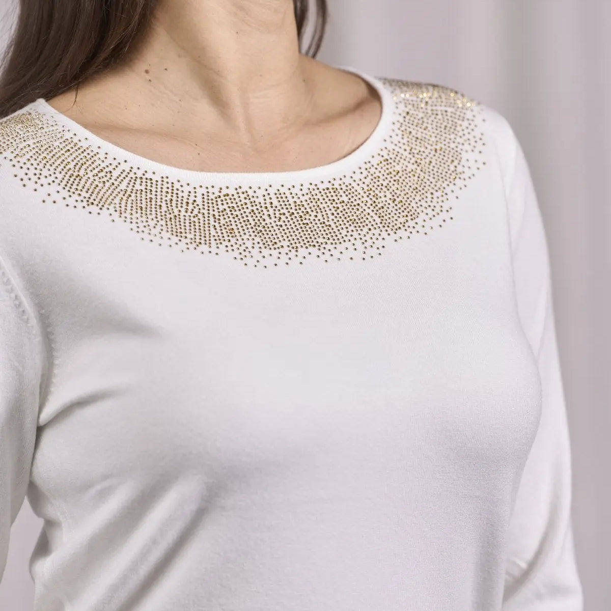 Suéter de cuello redondo de lúrex con puños y botones CREMA