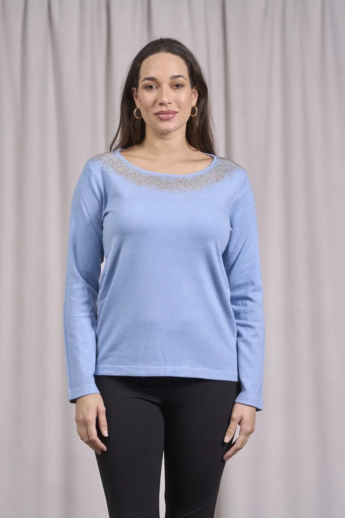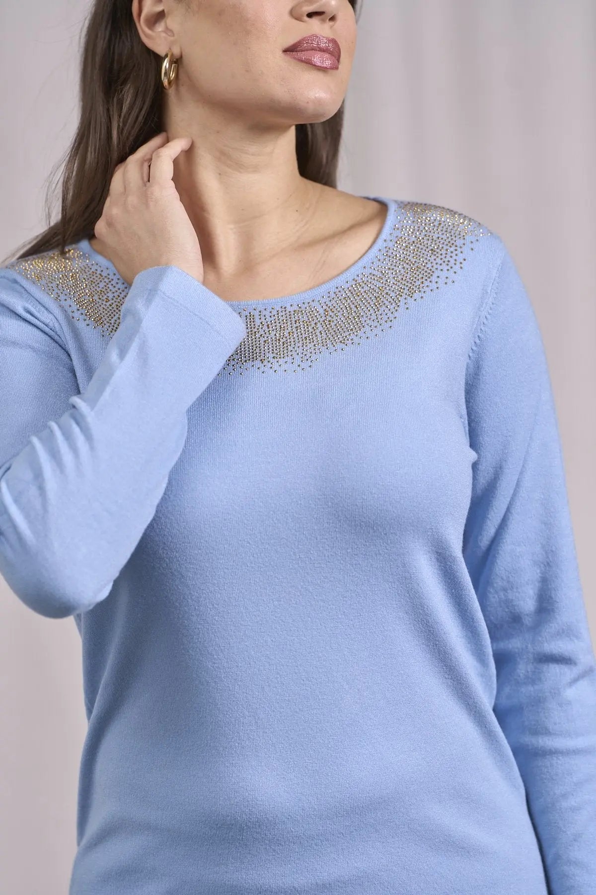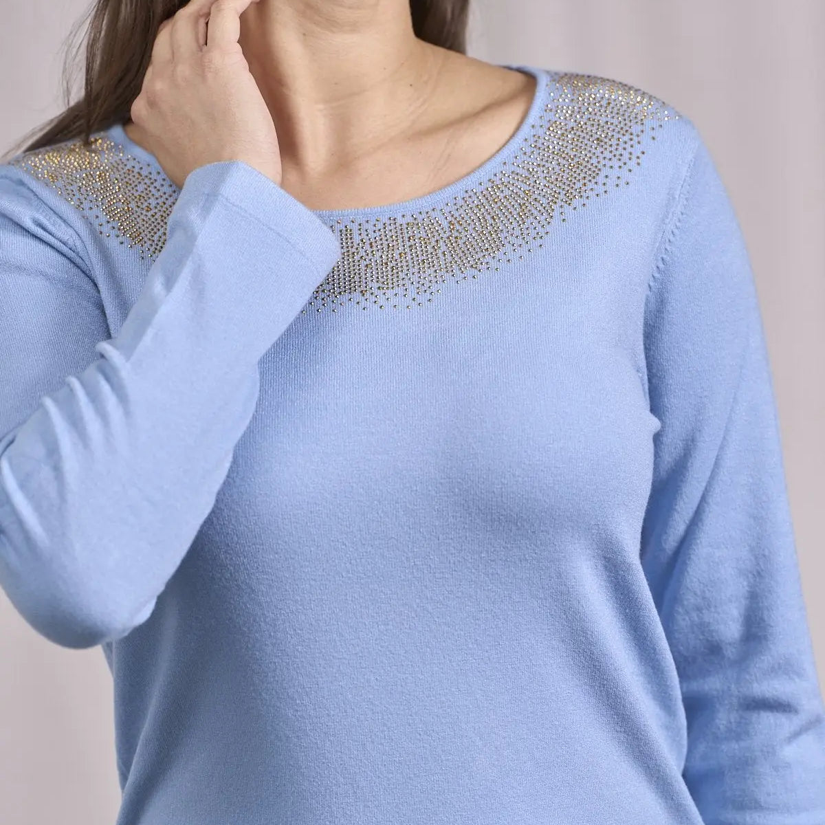Suéter de cuello redondo de lúrex con puños y botones SKY