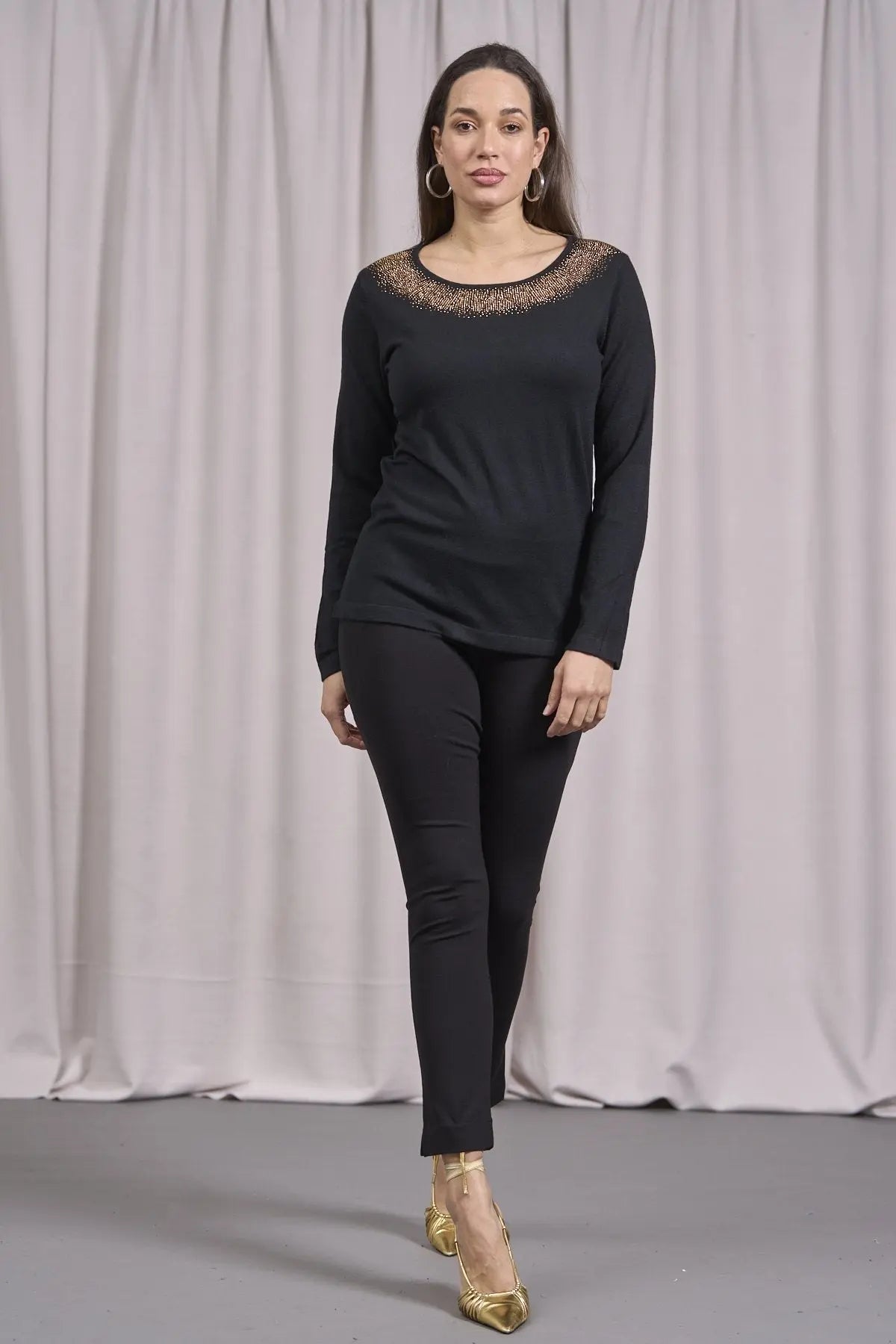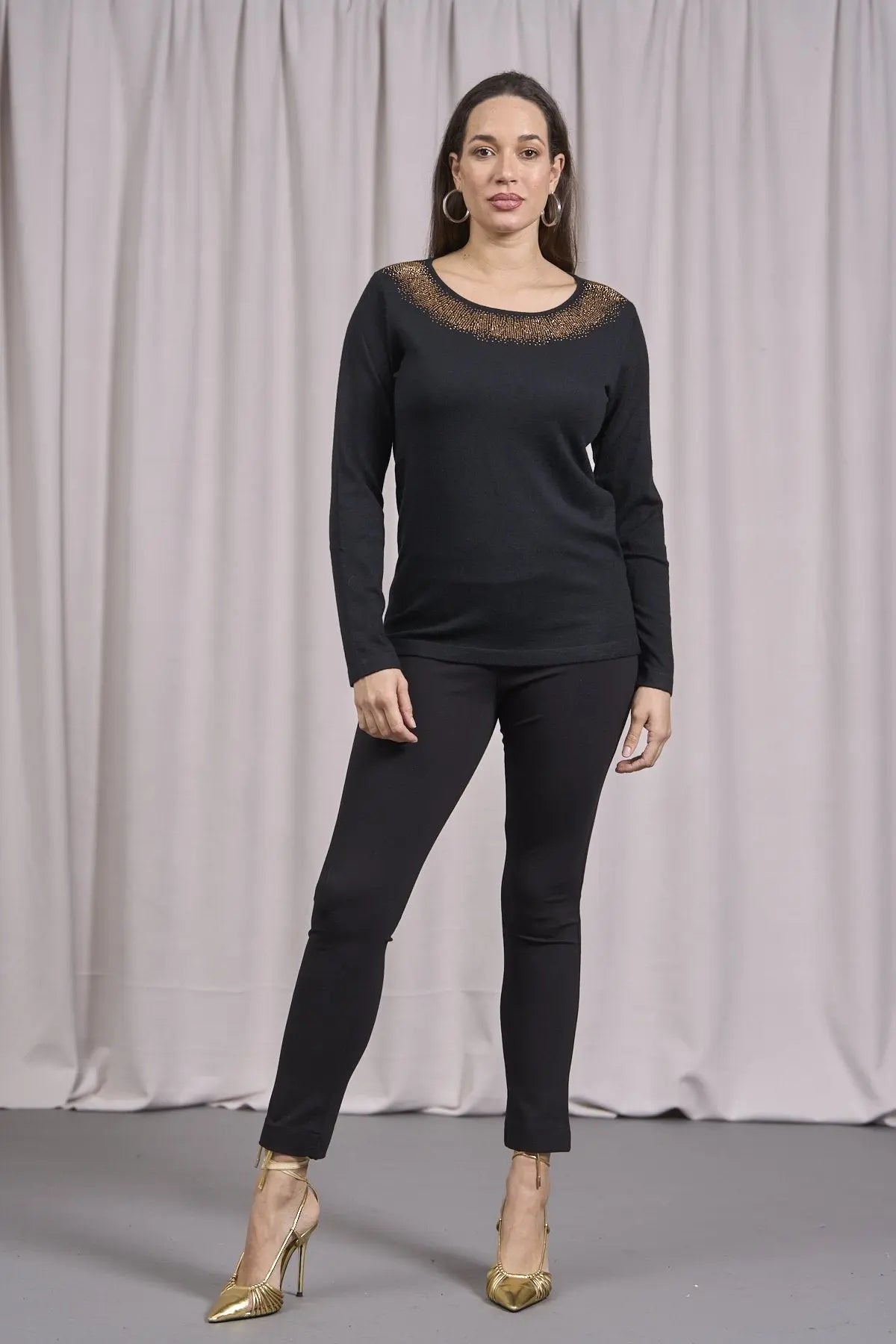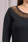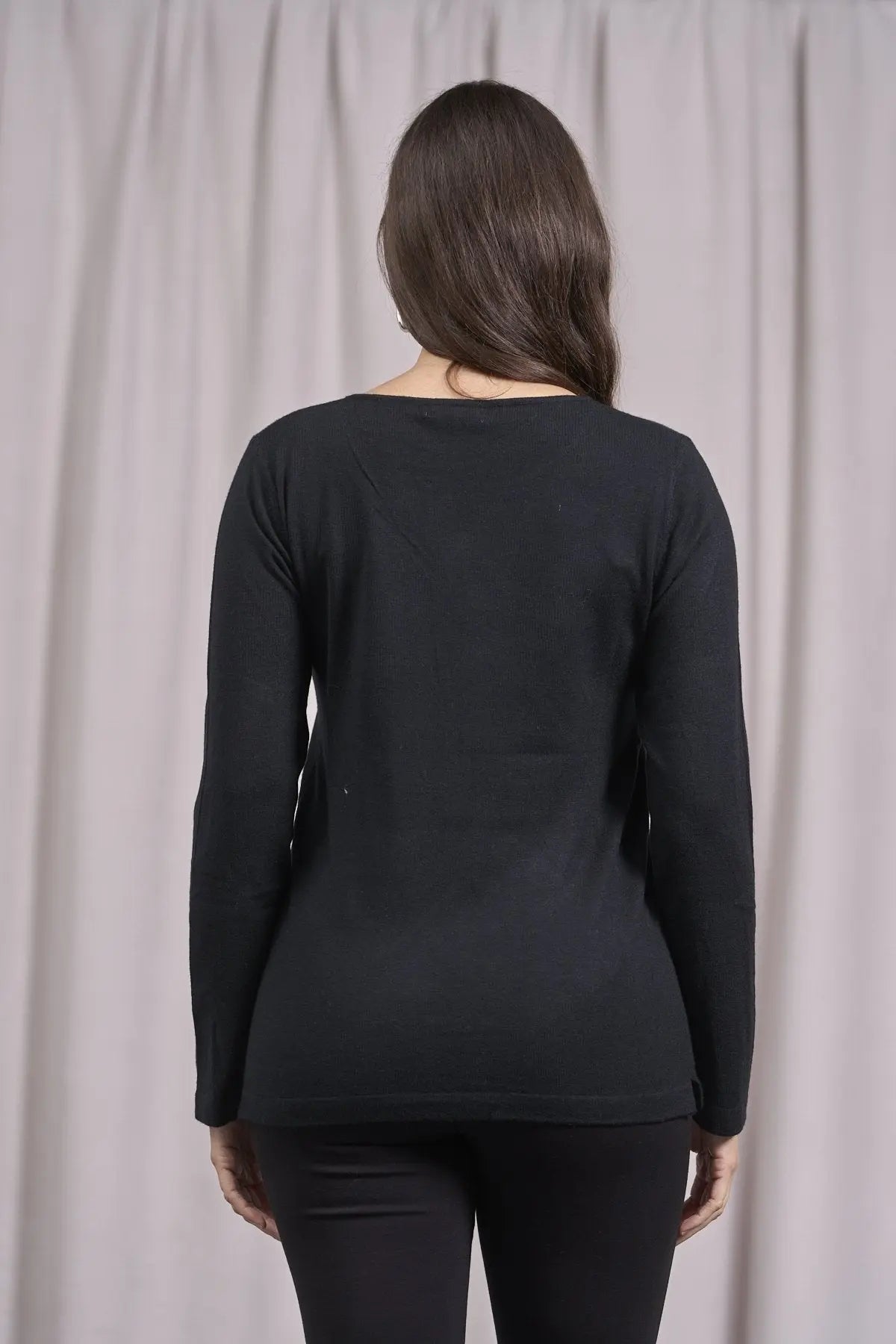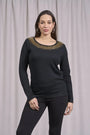 Suéter de cuello redondo de lurex con puños y botones NEGRO