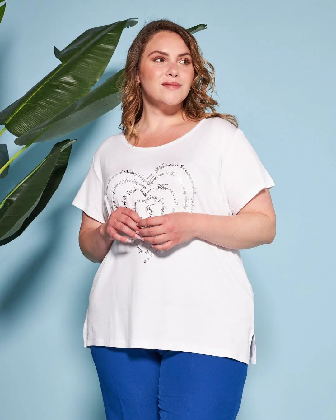 Camiseta con pliegues e inserciones laterales con estampado BLANCO